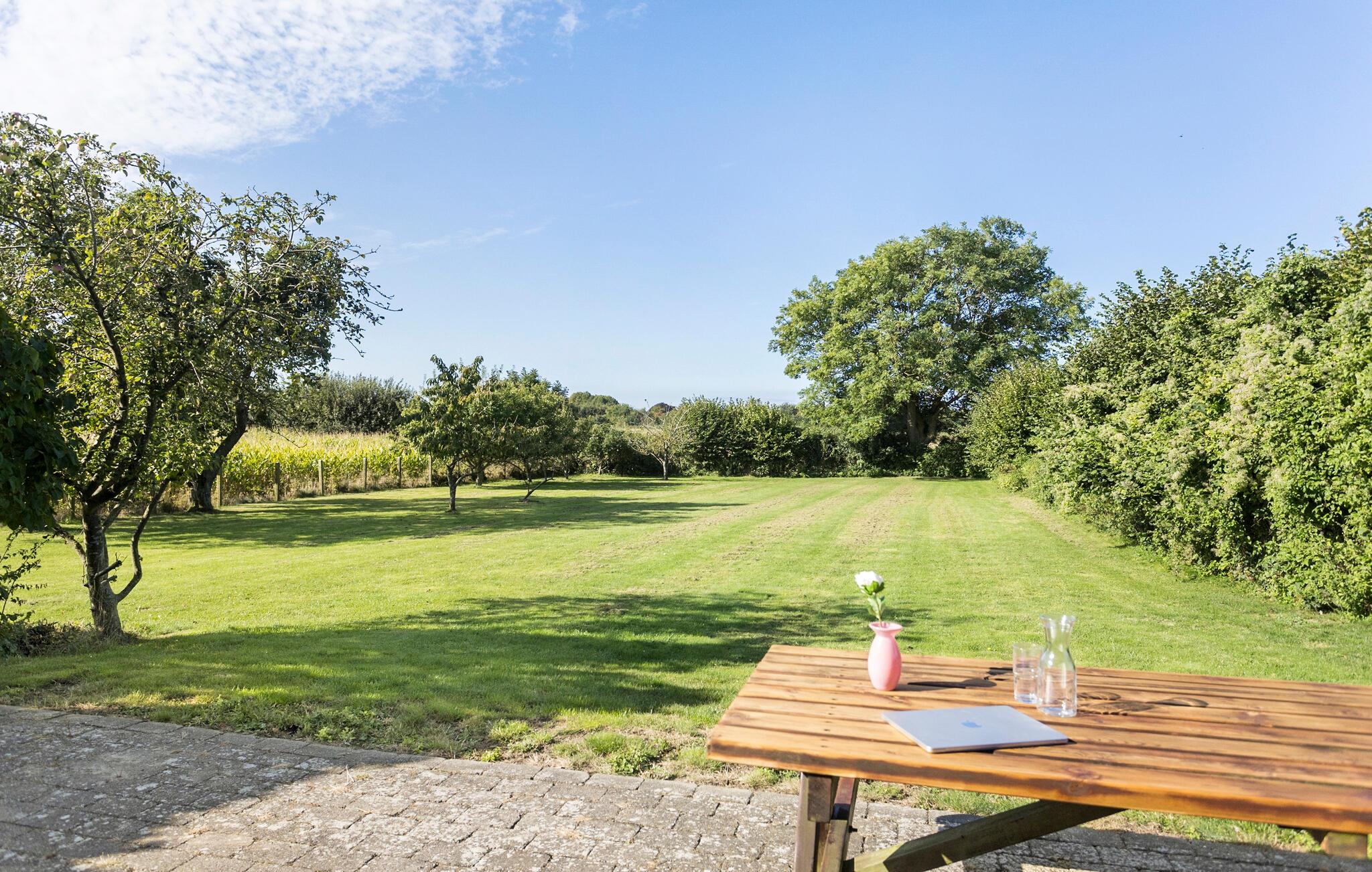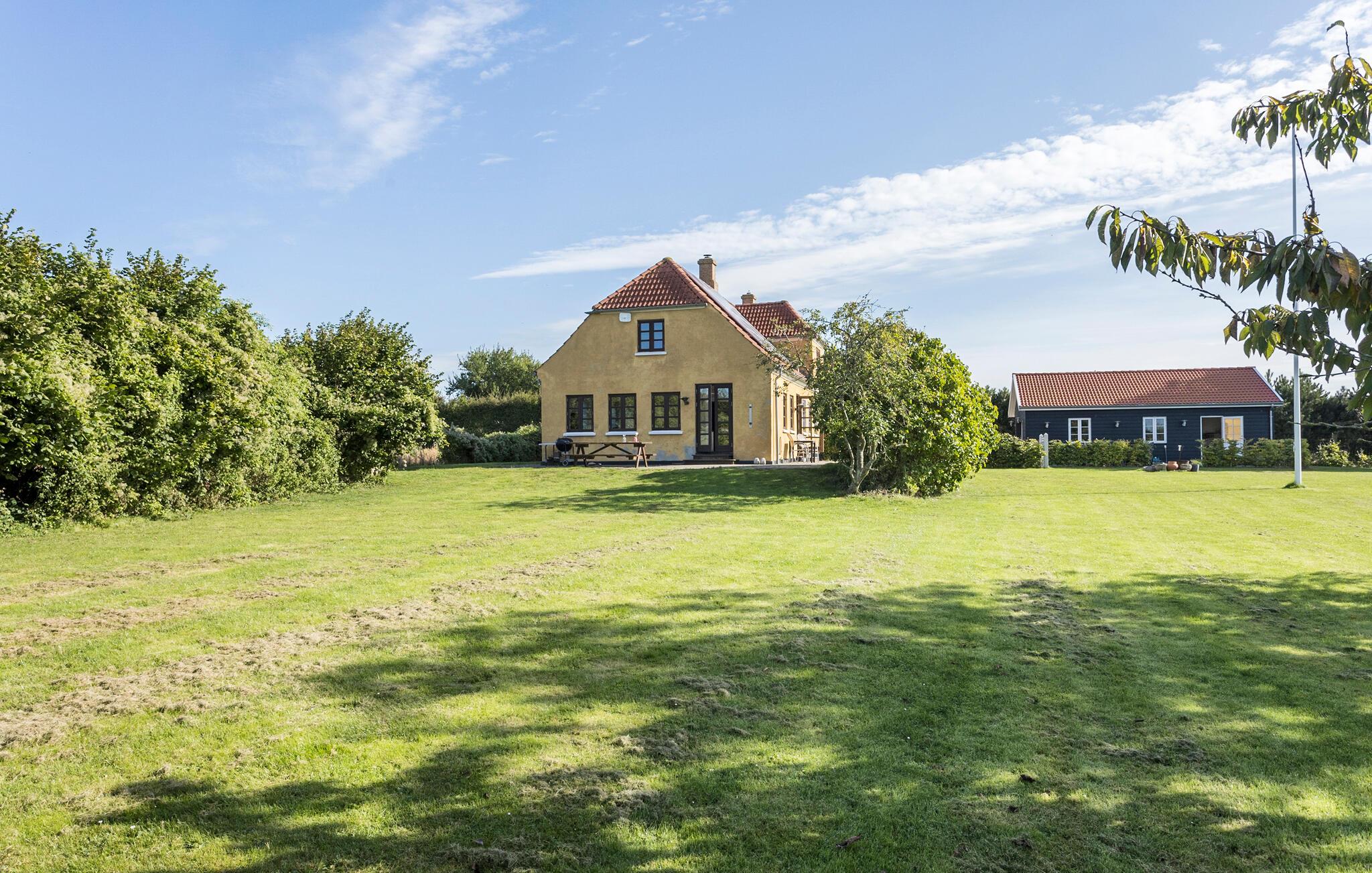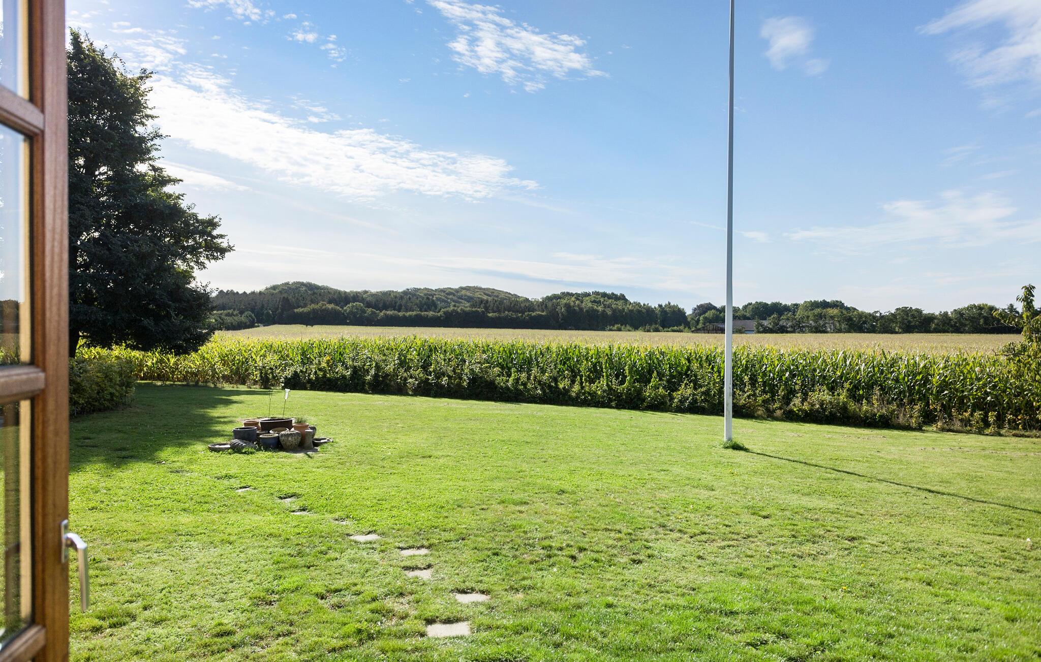 Familienfreundliches Landhaus in Sønder Longelse mit Whirlpool, großer Naturgrundstück und Blick auf weite Felder.