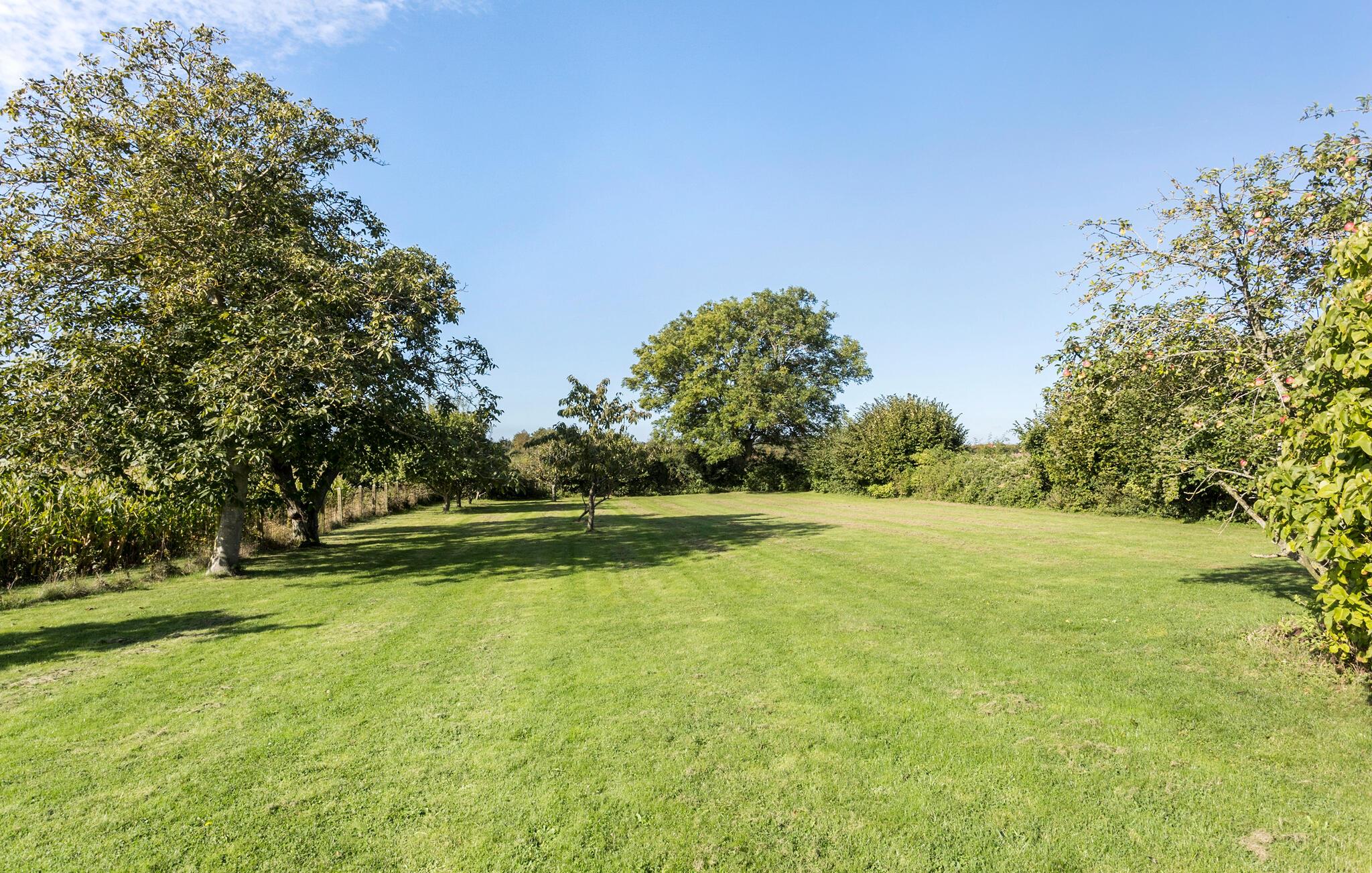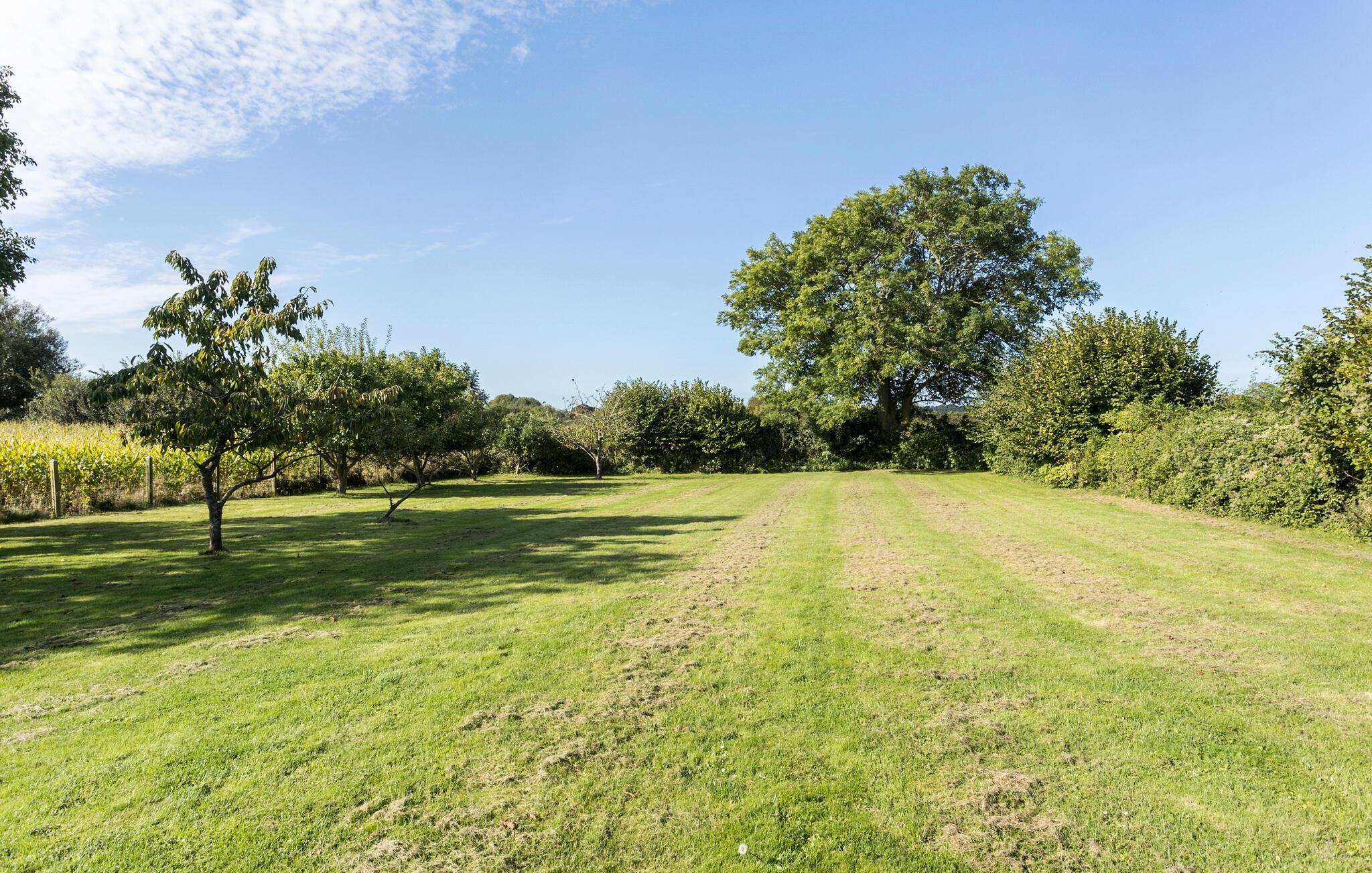 An warmen Tagen lädt die Terrasse dazu ein, den Grill anzufeuern und das Essen inmitten der grünen Gartenidylle zu genießen. Die große Naturgrundstück mit Rasenflächen und Obstbäumen teilen Sie mit Rehen und Damhirschen, die regelmäßig vorbeischauen.