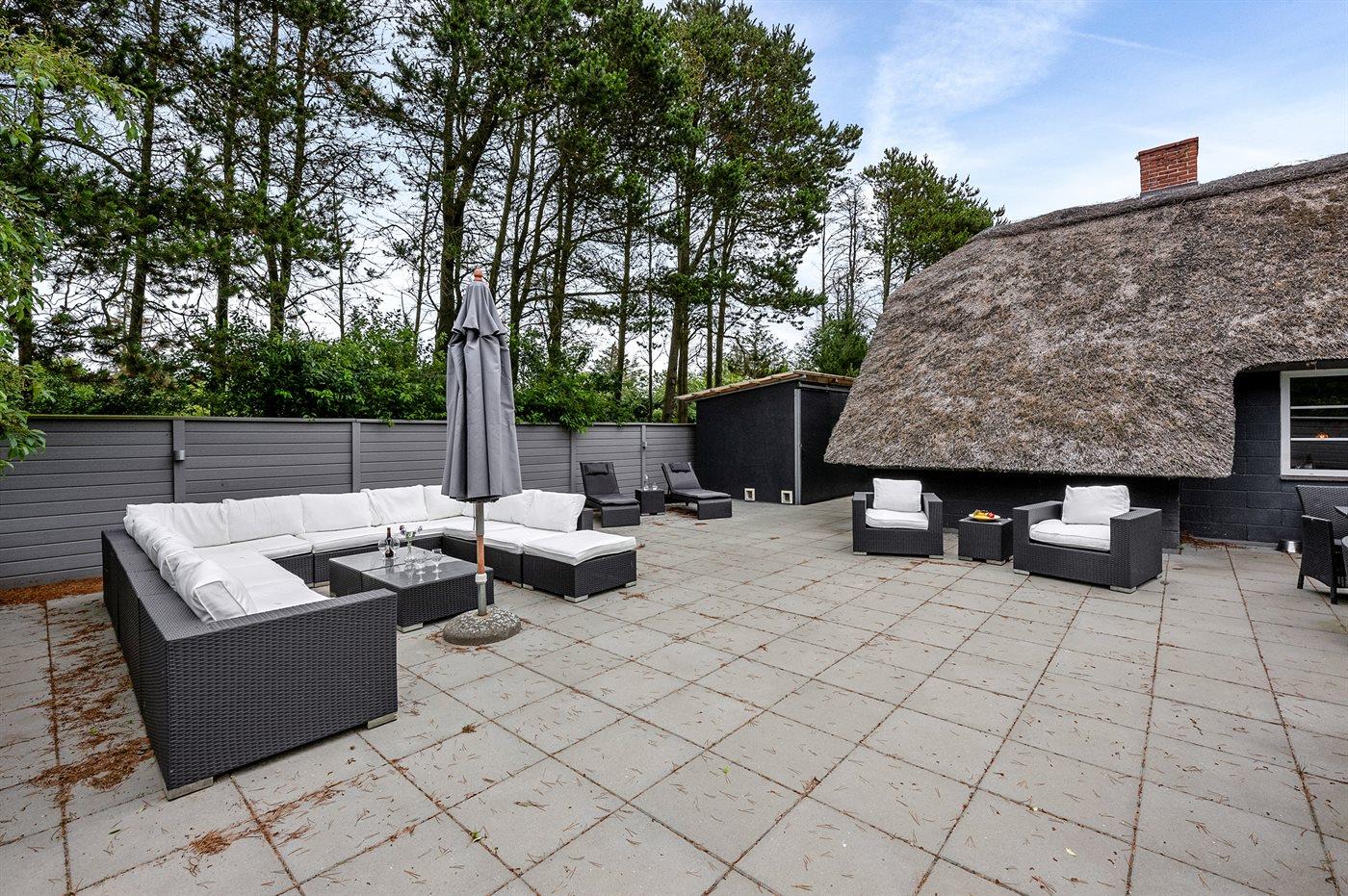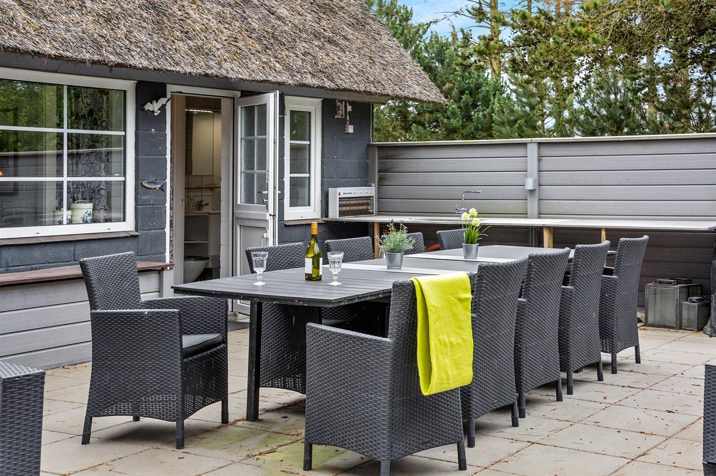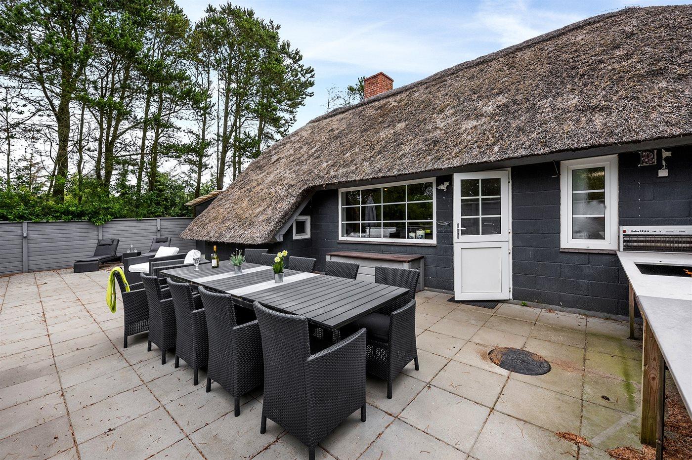 Die Ferienunterkunft liegt auf einem 1015 m² großen Naturgrundstück. Das Grundstück ist eingezäunt. Die Entfernung zum Meer beträgt 7000 m. Die Entfernung zum Fjord beträgt 200 m.Die Entfernung zum Wattenmeer beträgt 3000 m. Die nächste Einkaufsmöglichkeit liegt 1800 m entfernt. Es steht ein 140 m² Terrassenareal zur Verfügung. Davon insgesamt 140 m² geschlossene Terrasse.Es beteht die Möglichkeit das Essen in der Außenküche zuzubereiten. Parkplatz auf dem Grundstück.