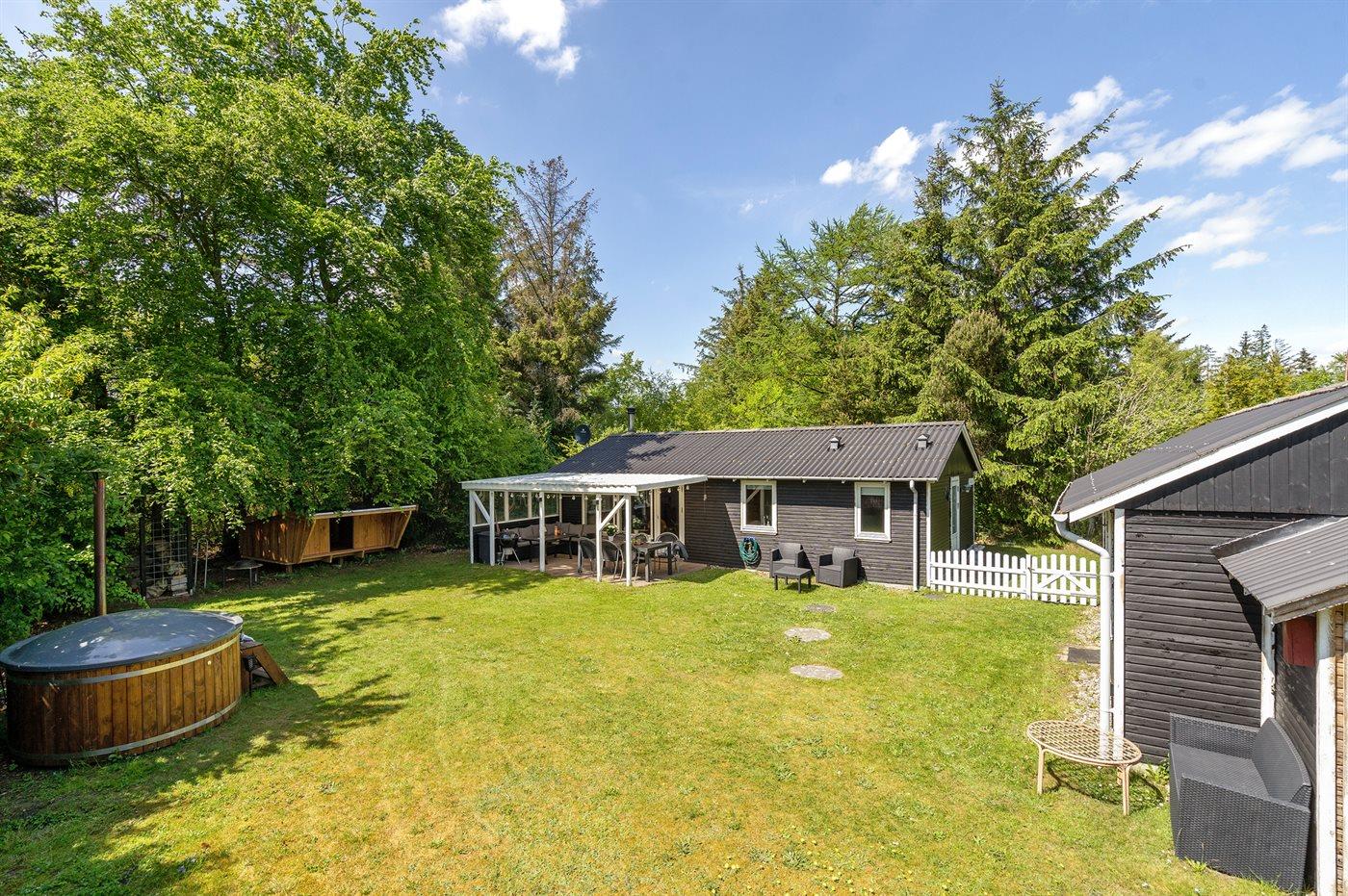 Die Ferienunterkunft liegt auf einem 902 m² großen Naturgrundstück. Die Entfernung zum Meer beträgt 5000 m. Die Entfernung zum Fjord beträgt 600 m. Die nächste Einkaufsmöglichkeit liegt 3000 m entfernt. In einem Abstand von 15000 m gibt es einen Golfplatz. Es stehen sowohl offene als auch überdachte Terrassen zur Verfügung. Windschutzhütte. Parkplatz auf dem Grundstück.
