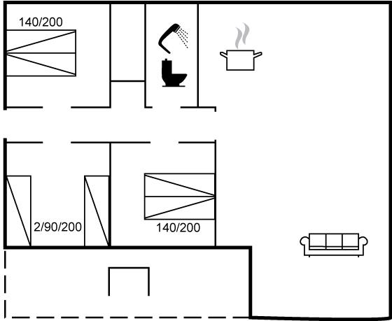 Die Schlafplätze verteilen sich auf 3 Schlafräume. 4 Schlafplätze in Doppelbetten. 2 Schlafplätze in Einzelbetten.