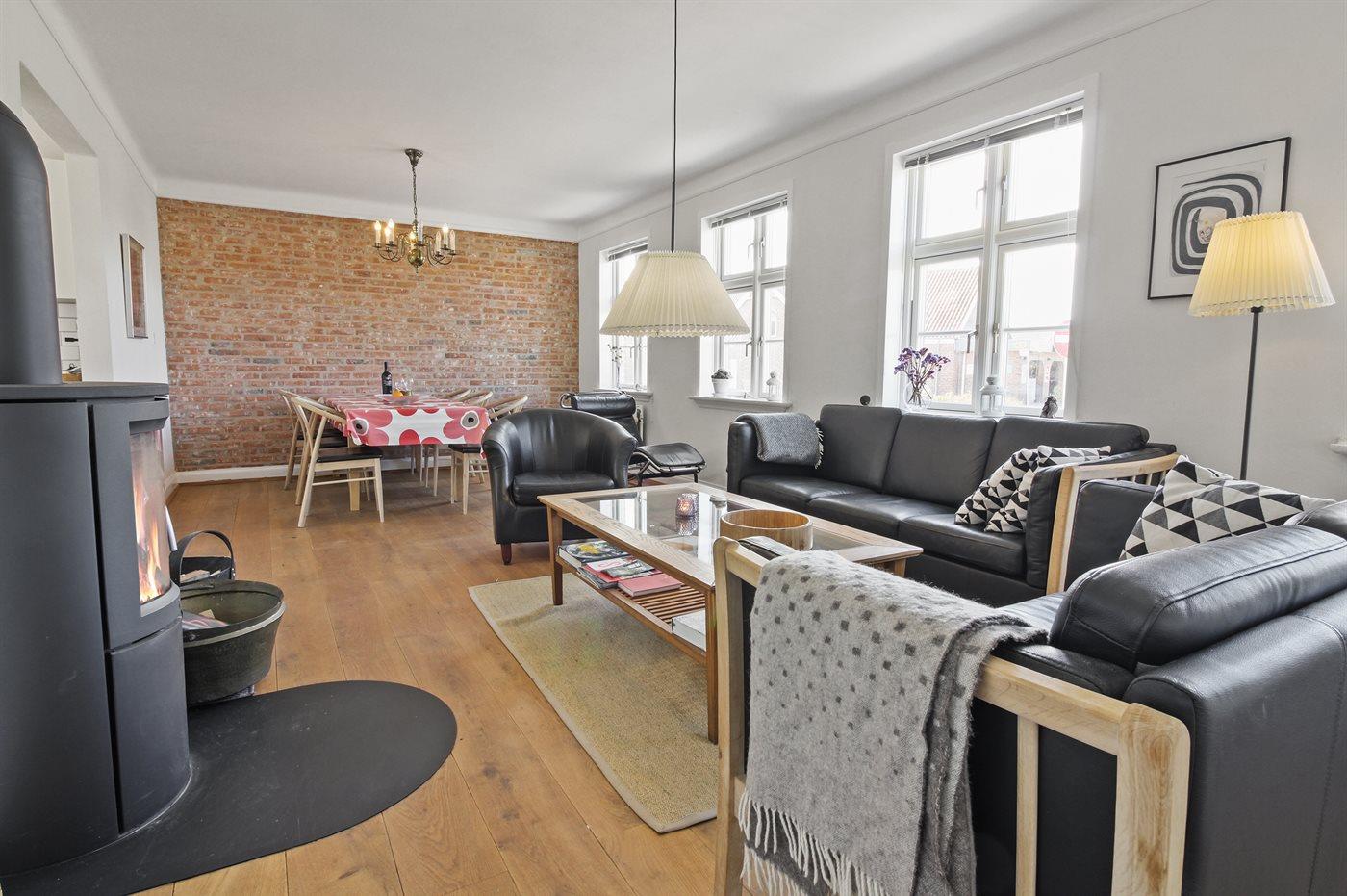 Ein sehr charmantes Stadthaus gelegen zentral in Sdr. Nissum gegenüber dem örtlichen Kaufmann (Brugs). Das Haus ist schön und hell eingerichtet mit Fliesen und Holzböden in allen Räumen. Helle und funktionelle Küche in offener Verbindung mit dem Gemeinschaftsraum und der Stube, wo man es sich an kühlen Abenden vor dem Kaminofen gemütlich machen kann.
