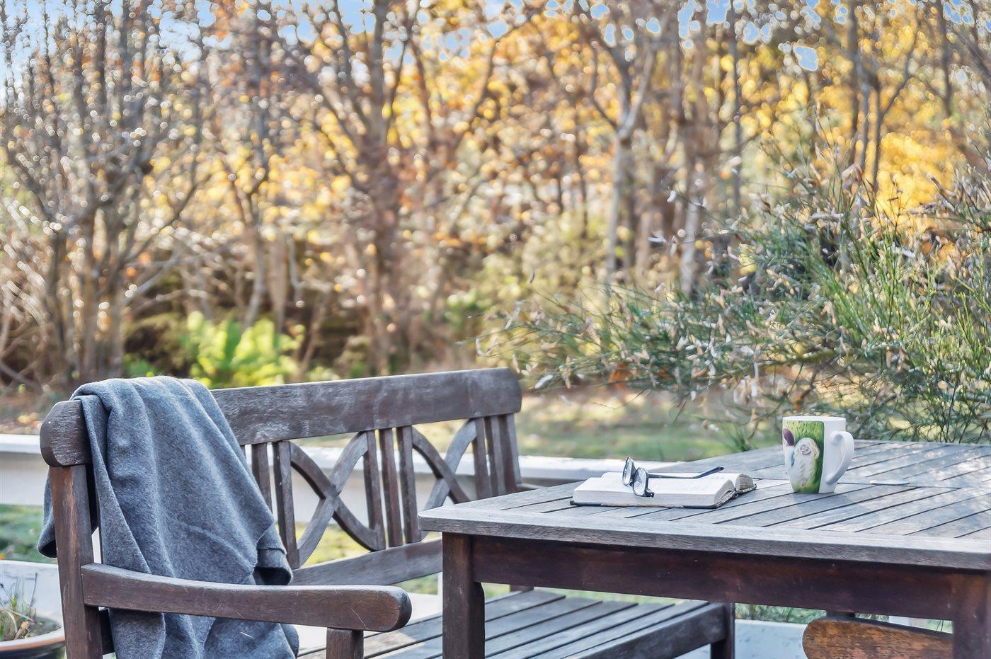 Auf der großen Holzterrasse könnt ihr entspannen und das schöne Wetter genießen. Der überdachte Teil der Terrasse bietet Schatten und eignet sich perfekt, um die späten Abendstunden draußen zu verbringen.