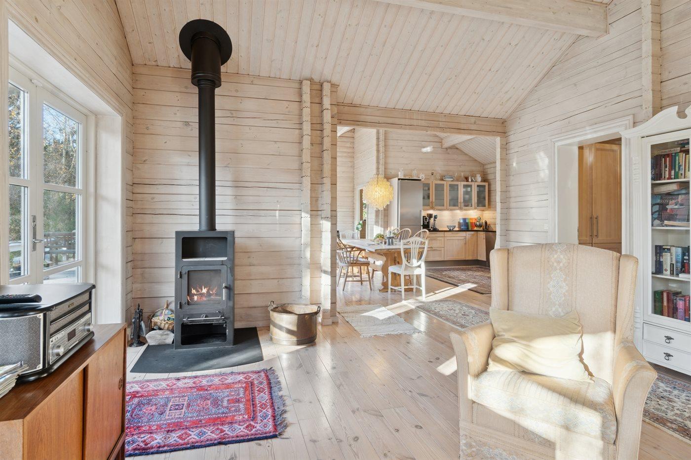 Genießen Sie ein geräumiges Ferienhaus mit Kamin, Terrasse und Nähe zum kinderfreundlichen Strand in Gudmindrup Lyng.