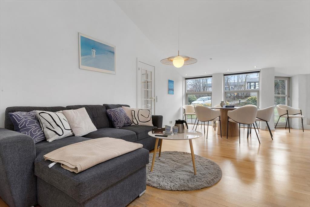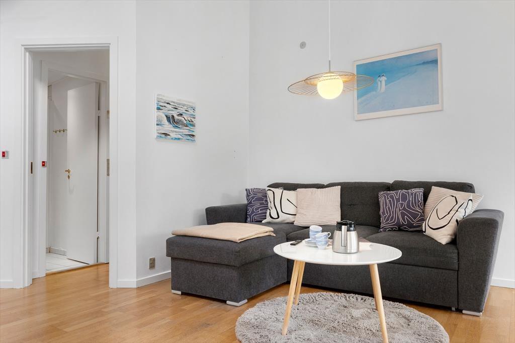 Hier bekommst du schnell Zugang zu einem schönen Leben an der frischen Luft! Das Ferienhaus ist nur ca. 100 Meter vom Strand entfernt. So kannst du morgens aufstehen, wenige Schritte gehen - und den Sand unter den Füßen spüren, während du die Wellen an die Küste schlagen hörst. Zu dem Haus gehören ein geräumiger Garten und eine Terrasse, auf der du deinen morgendlichen Kaffee im Sonnenschein genießen, köstliche Urlaubsmahlzeiten zubereiten, auf dem Gras spielen oder mit einem Glas Wein entspannen kannst, während die Sonne am Horizont versinkt. Hier hast du alles, was du für eine entspannte Zeit oder aktives Outdoor-Leben an der Küste brauchst.