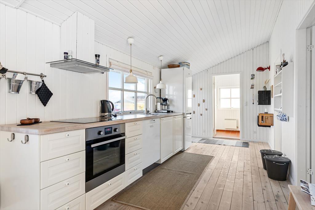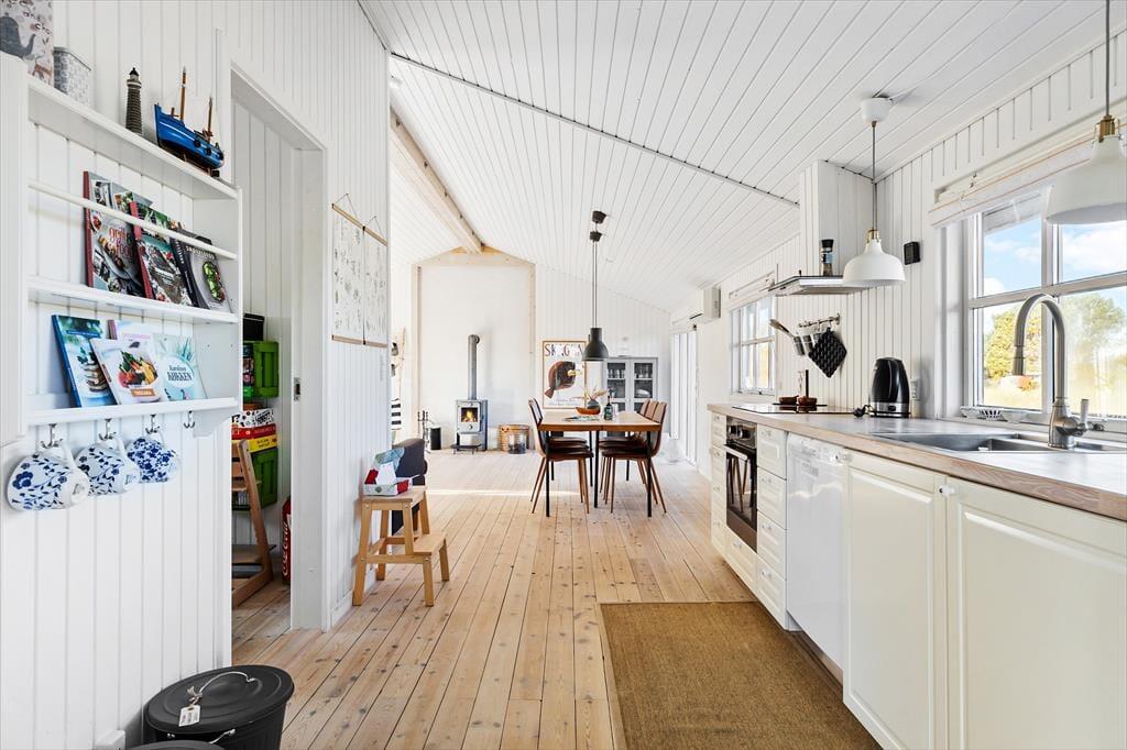 In diesem hellen und gemütlich eingerichteten Ferienhaus in der Søstjernevej 1 B findest du den idealen Rahmen für einen erholsamen Urlaub in der Nähe von Skagen Strand und Stadt. Hier treffen moderne Annehmlichkeiten wie Wärmepumpe, WLAN und eine gut ausgestattete Küchenecke auf den Charme eines klassischen Holzofens, der an kühlen Abenden Wärme und Gemütlichkeit verbreitet. Stell dir vor, wie sich die Familie nach einem Tag am Strand im einladenden Wohnzimmer versammelt – das Knistern des Holzes im Ofen im Hintergrund, während ihr einen guten Film schaut, Brettspiele spielt oder einfach plaudert. Die Einrichtung schafft eine Atmosphäre von Komfort und Nähe, die dazu einlädt, das Tempo zu drosseln und den Urlaub in vollen Zügen zu genießen.