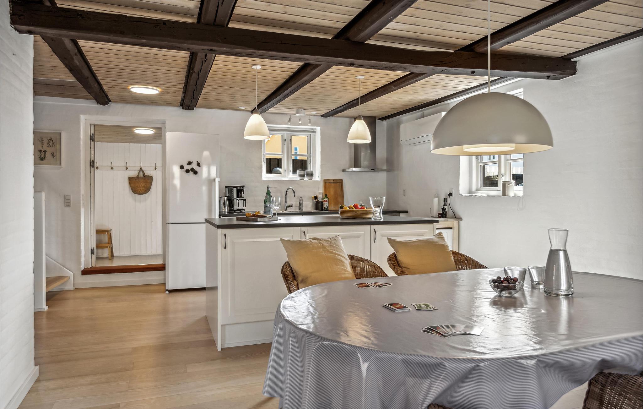 Das einladende Haus empfängt Sie in vorteilhafter Lage nicht weit vom Strand und mit guten Möglichkeiten für Aktivitäten in der Natur. Es bietet mit hellen Räumen und aparten Holzdecken den idealen Rahmen für eine erholsame Auszeit. Machen Sie es sich nach einem erlebnisreichen Tag am Esstisch gemütlich oder entspannen Sie auf den einladenden Sofas, vielleicht streamen Sie Ihre Lieblingsserie.