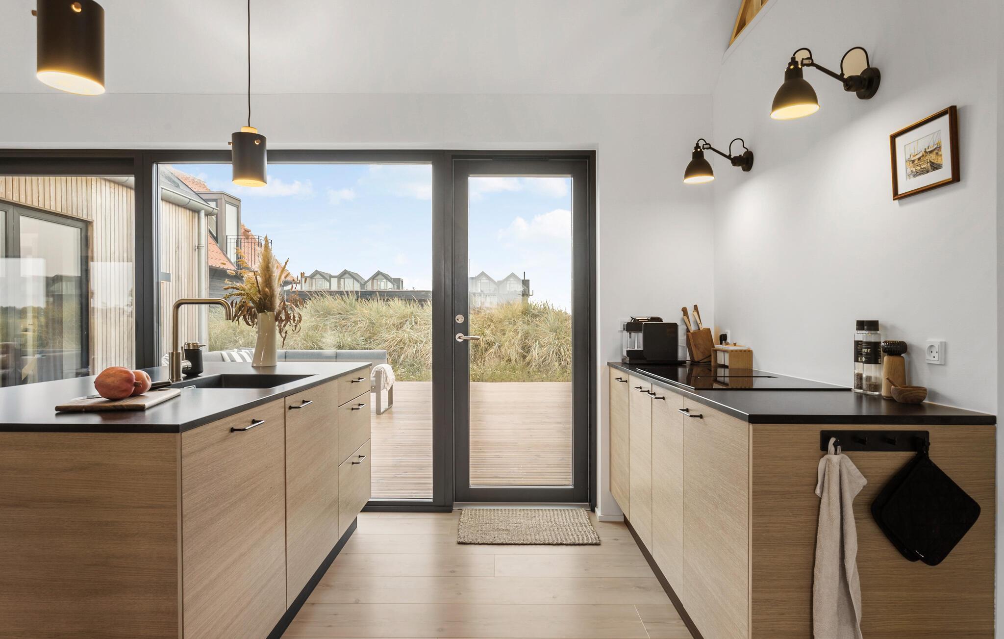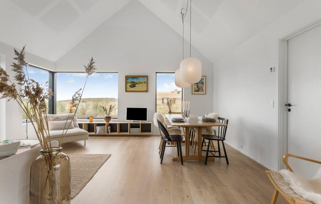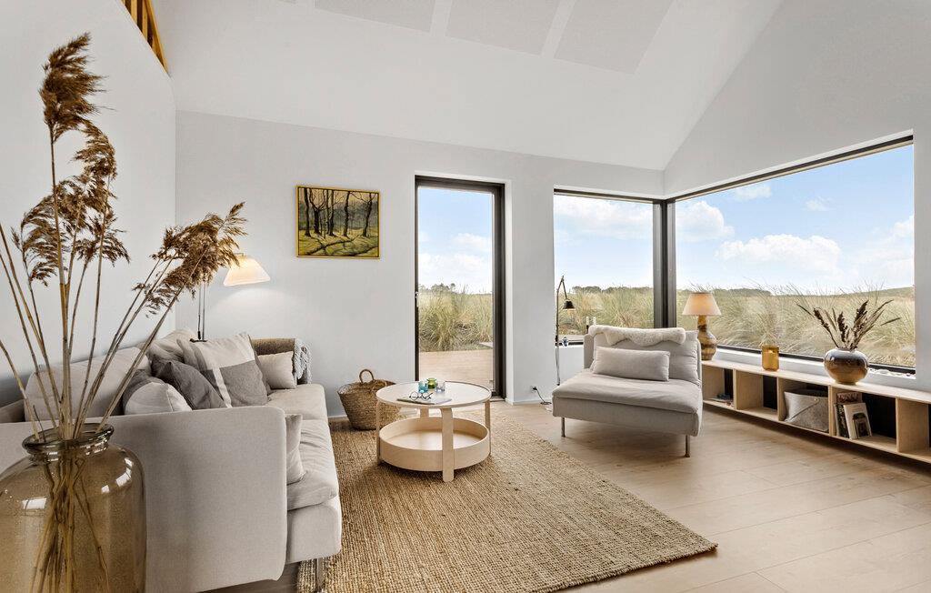 Willkommen an der Spitze Dänemarks. Lassen Sie den Alltag hinter sich und genießen Sie Ihr Ferienhaus mit interessanten architektonischen Details auf einem Dünengrundstück. Das Haus wurde aus hochwertigen Materialien gebaut und besticht durch eine helle und geschmackvolle Einrichtung. Die offene Deckenkonstruktion verleiht dem Haus eine angenehme Atmosphäre, und von dem geräumigen Schlafboden aus genießen Sie eine wunderbare Aussicht.