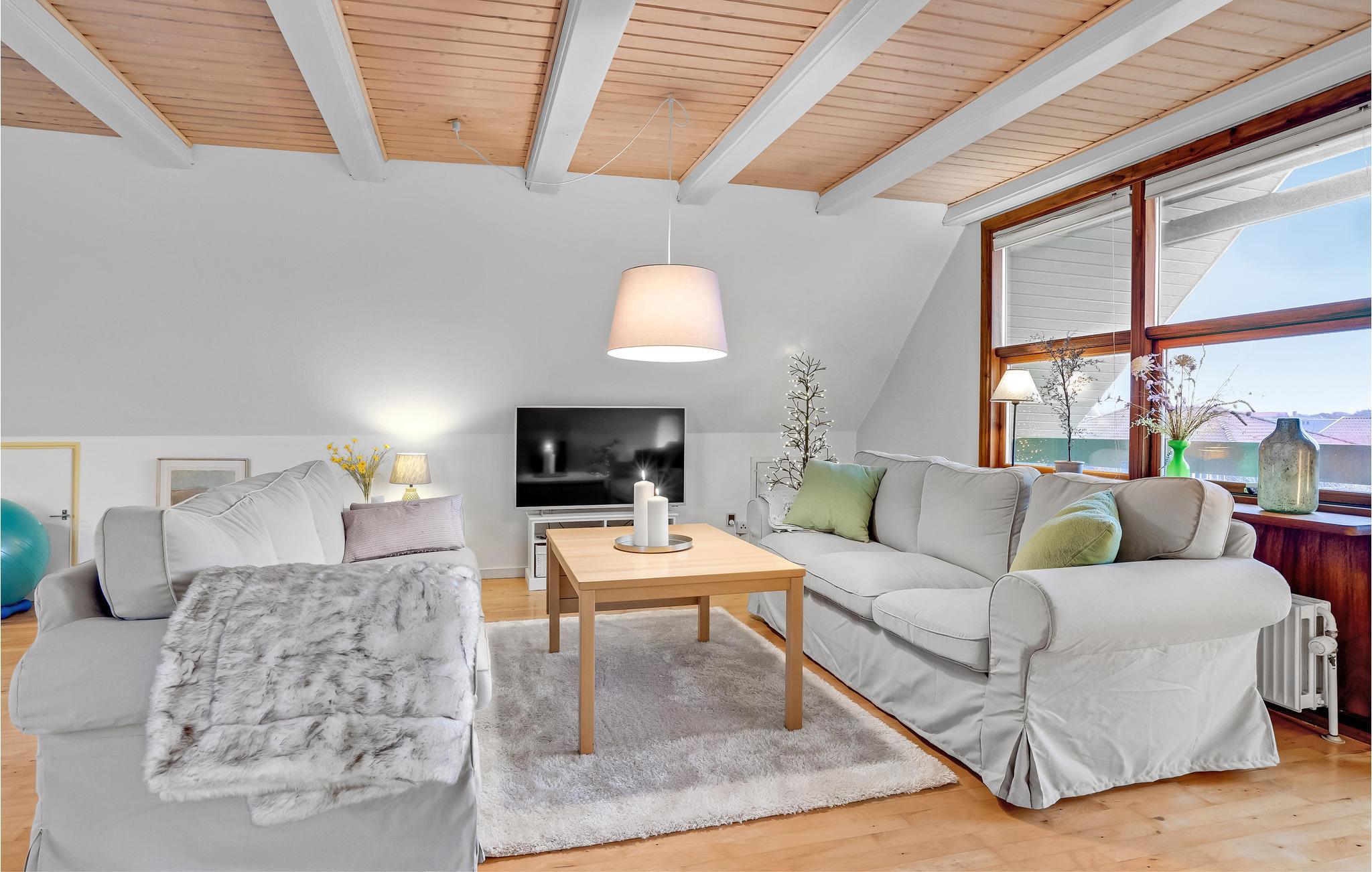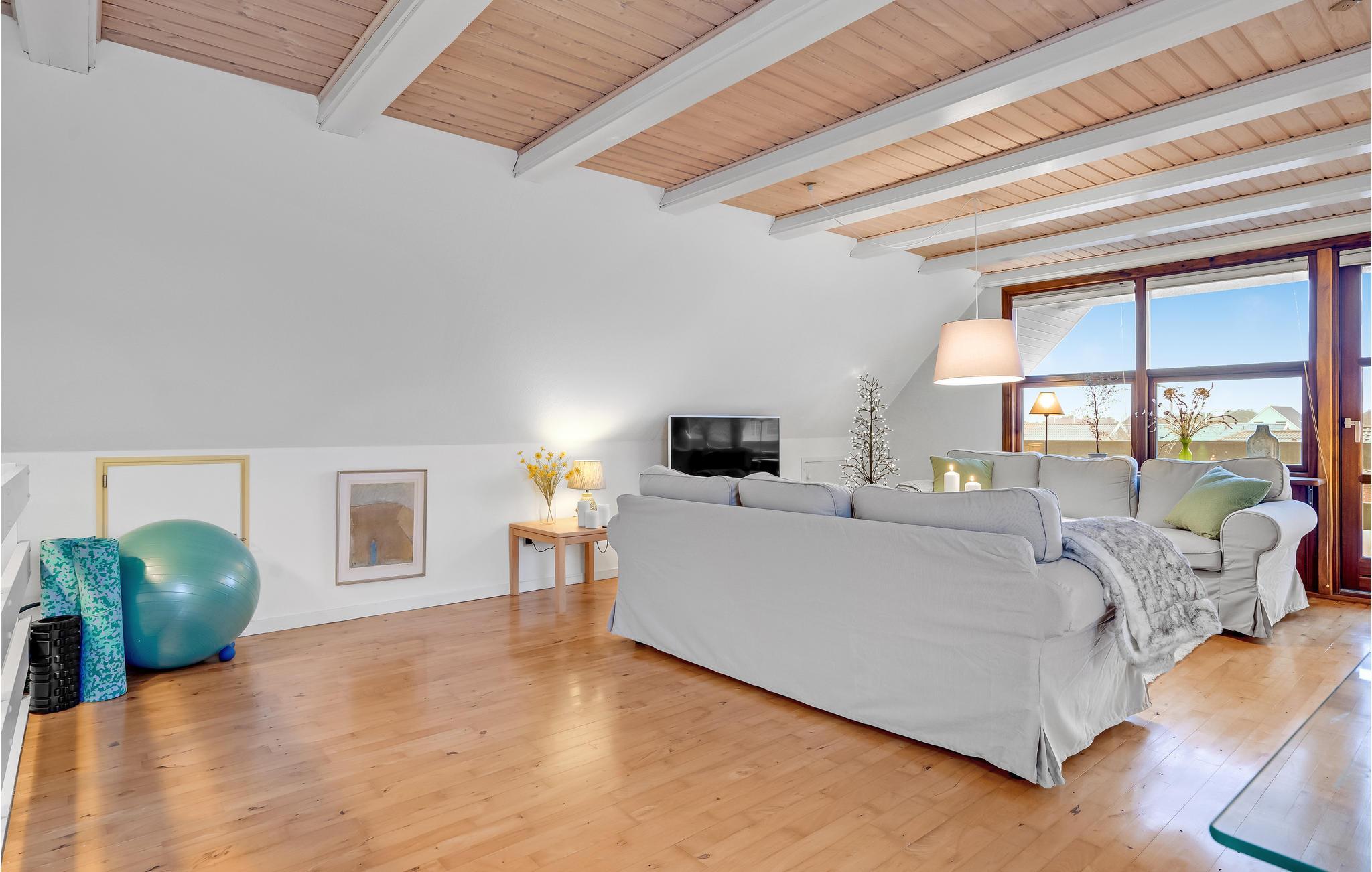 Besonders der Wohnbereich unter dem Spitzdach sorgt für eine angenehme Atmosphäre, sodass Sie sich nach Ihren Ausflügen und Spaziergängen immer wieder gerne in ihr Haus zurückziehen werden.