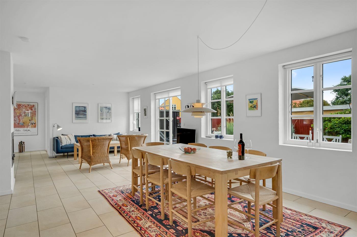 Dieses Skagenhaus, 2006 gebaut, liegt in der Mitte von Skagen - nah am Strand. Zum Haus gehören kleiner Garten und Terrasse mit Gartenmöbeln. Helle gestrichene Wände und Decken. Beheizte Klinkerböden überall, jedoch Holzfußböden im Obergeschoss. Das Haus ist geschmackvoll eingerichtet, und das Erdgeschoss verfügt über eine große Küche mit Ceran-Feld, Warmluftofen, Mikrowelle, Tielkühlgerät und Geschirrspüler. Die Küche ist mit dem Wohnzimmer kombiniert und enthält Stereoanlage mit CD-Spieler, DVD-Spieler, TV und Gemeinschaftsantenne. Außerdem Badezimmer, Schlafzimmer und Waschküche mit Waschmaschine und Wäschetrockner. Das Obergeschoss verfügt über 3 Schlafzimmer, das eine mit TV, und Badezimmer. Ferner kostenlose, kabellose Internetverbindung (Computer ist mitzubringen) und Kinderbett vorhanden.