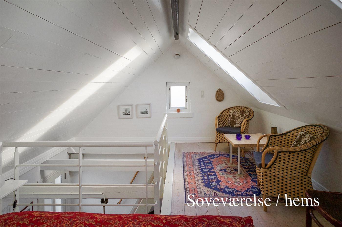 Wohnung in einem kleinen und renovierten Gästehaus, das zu einem schönen Skagenhaus mit guter Lage gehört. Kleiner, gemeinsamer Sonnenhof mit Gartenmöbeln. Waschmaschine im Waschraum im Haupthaus vorhanden. Bitte beachten: Das Gästehaus ist nicht für Gehbehinderte und Kinder unter 12 Jahren geeignet, da eine steile Treppe ins offene Obergeschoss mit den Schlafplätzen führt.