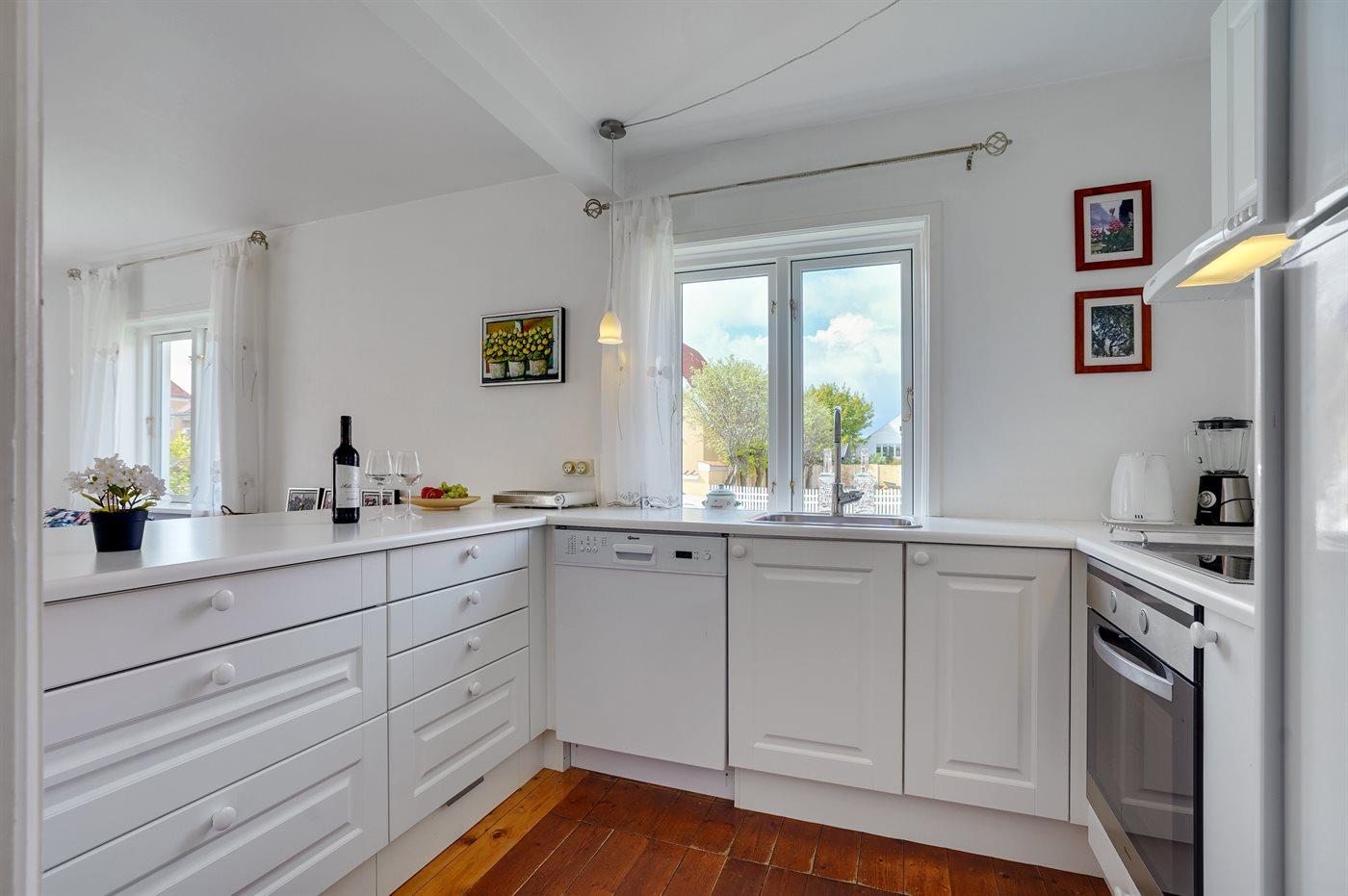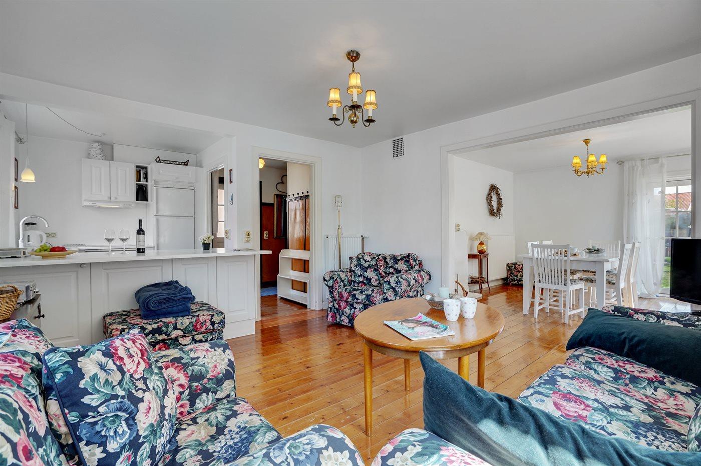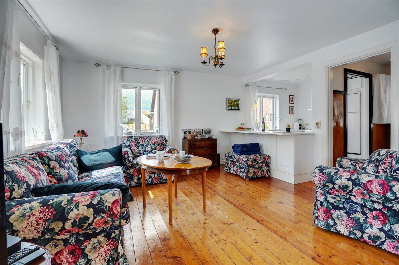 Dieses gut gelegene Skagenhaus liegt zentral auf einem ruhigen Villenweg. Zum Haus gehört ein abgeschirmter Grundstück mit Gartenmöbeln. Separater Duschraum.