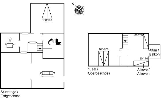 Die Schlafplätze verteilen sich auf 2 Schlafräume. 4 Schlafplätze in Doppelbetten.1 Schlafplatz im Alkoven. Ferner steht ein Kinderbett zur Verfügung.