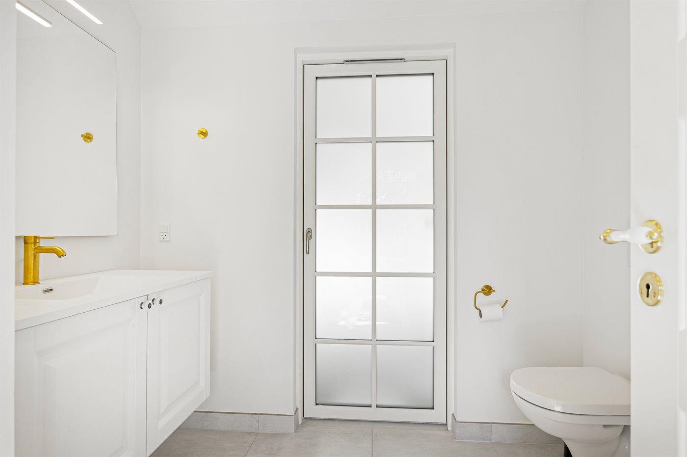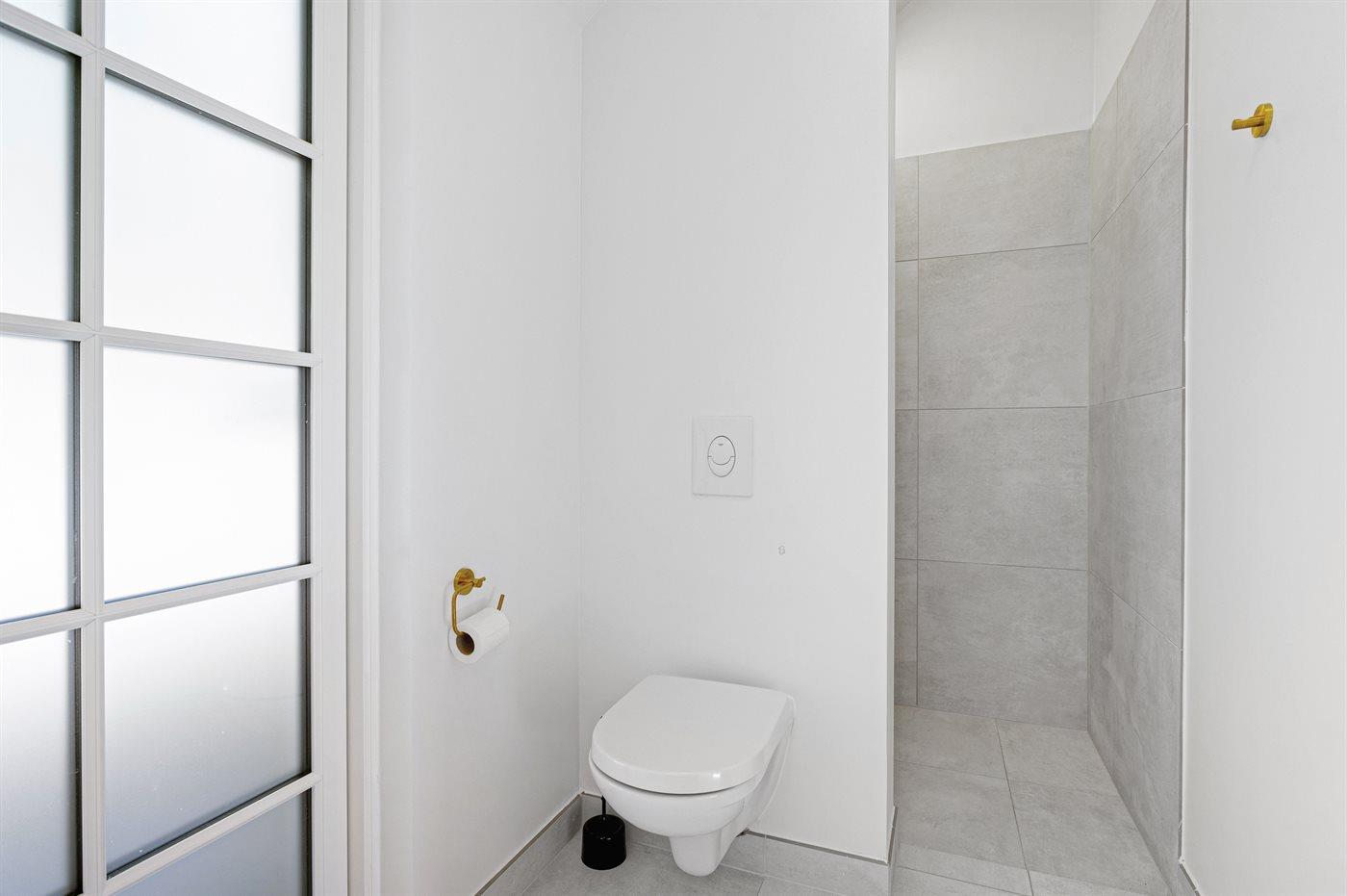 Es gibt 1 Badezimmer mit Duschnische und 2 Toiletten, davon 1 Gästetoilette. Fußbodenheizung in 1 Badezimmer.