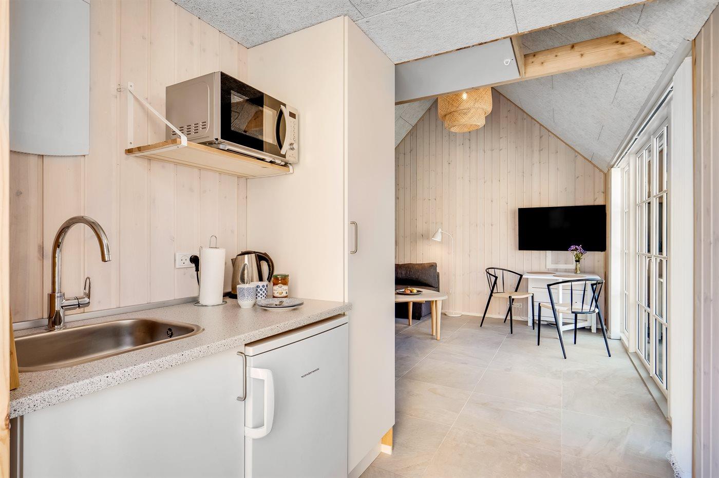 Zum Sommerhaus gehört ein schönes Gästehaus, das mit 4 Schlafplätzen, einer kleinen Küche und einem Badezimmer in gleicher Qualität wie das Haus eingerichtet ist.