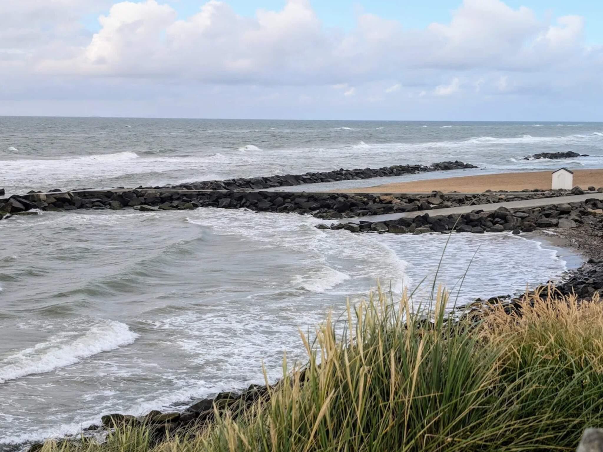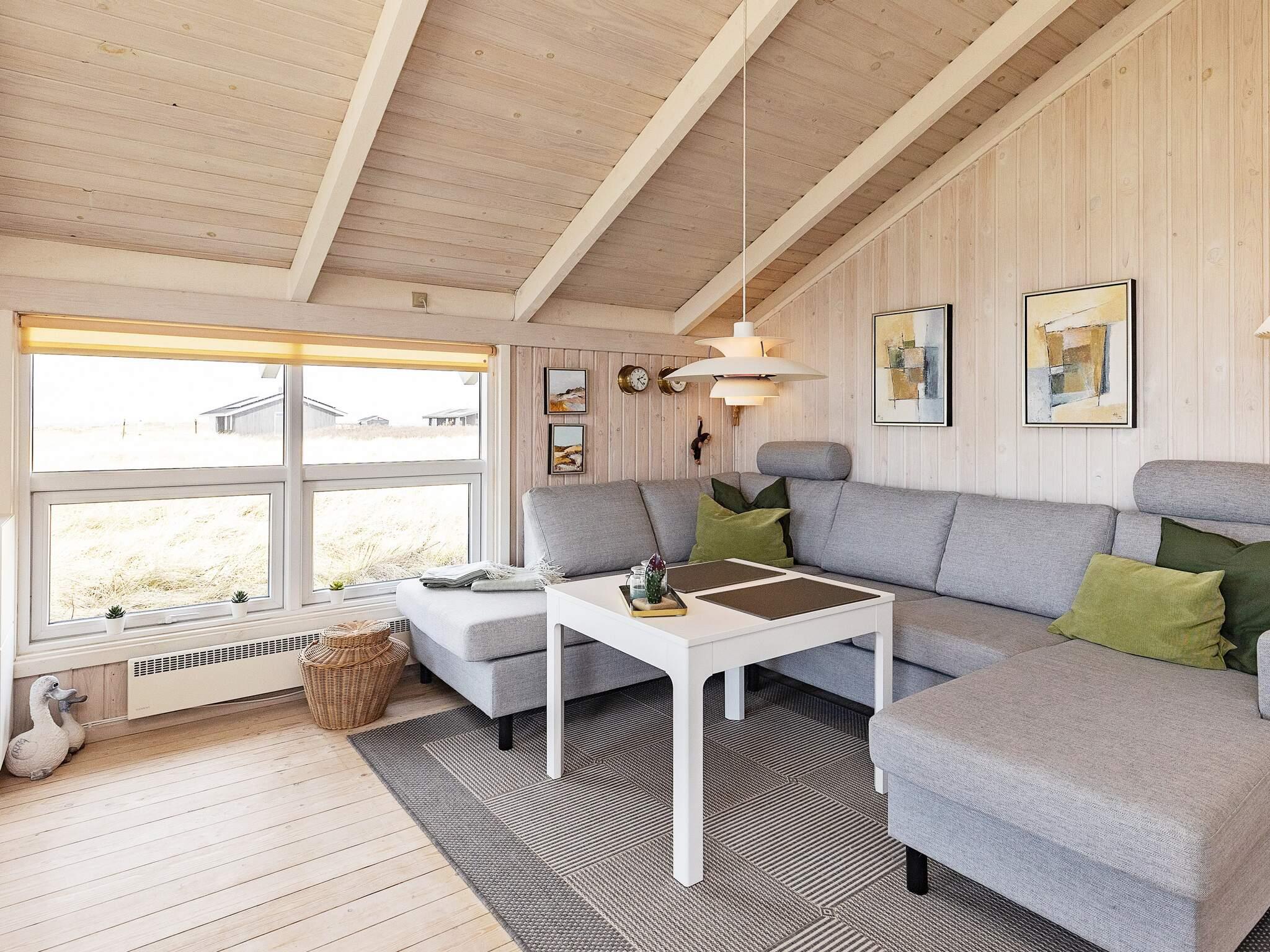 Dieses charmante und gepflegte Ferienhaus liegt auf einem offenen, sonnigen Naturgrundstück in Skallerup Klit und bietet vom Wohnzimmer und Teilen der großzügigen Holzterrasse, die das Haus umgibt, einen herrlichen Blick auf die Nordsee.