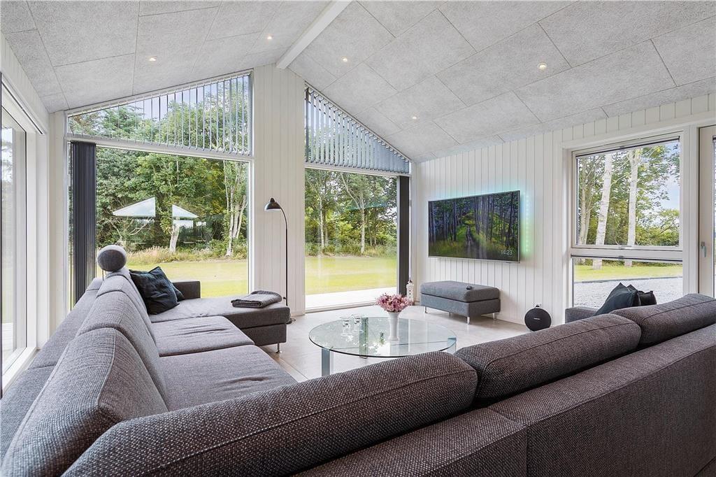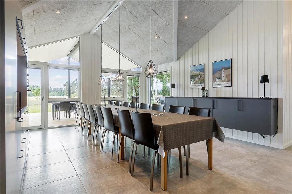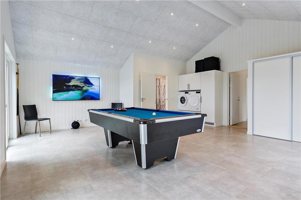 Das Ferienhaus bietet eine helle und moderne Einrichtung, die eine einladende Atmosphäre mit viel Platz für gemeinsames Beisammensein und Entspannung schafft. Die sechs Schlafzimmer bieten ausreichend Platz, damit jeder seinen eigenen Rückzugsort finden kann. Der große Aktivitätsraum mit Tischtennis und Billard ist ein idealer Ort, um gemütliche Stunden mit Familie oder Freunden zu verbringen. Im Wohnzimmer können Sie sich bequem hinsetzen und die Wärme des Kaminofens genießen, während die offene Verbindung zwischen Wohnzimmer und Küche es einfach macht, zu sozialisieren und gleichzeitig zu kochen. Die moderne Einrichtung verleiht dem Haus ein helles und freundliches Ambiente, das wirklich das Feriengefühl verstärkt.