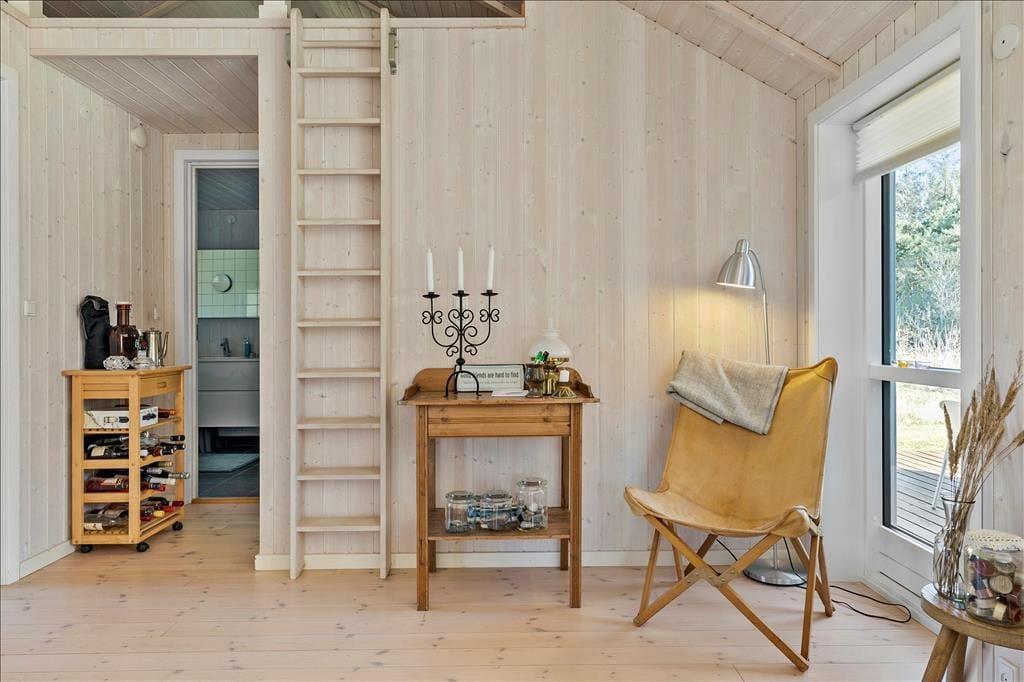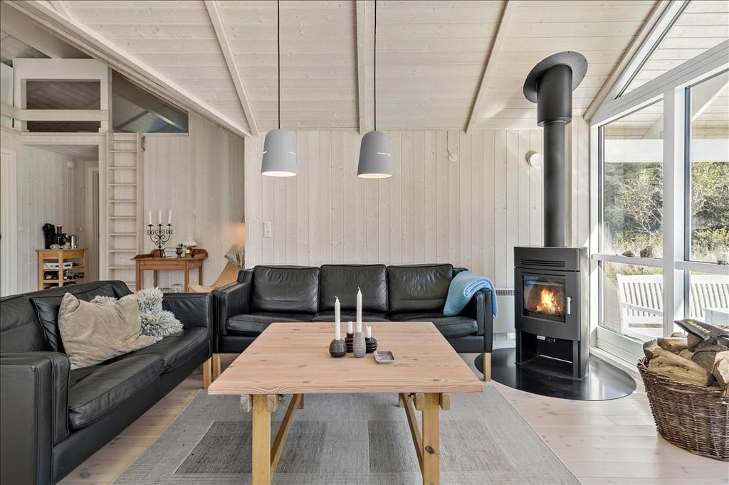 Das Ferienhaus umfasst eine Wohnfläche von 90 m² und beherbergt problemlos vier Personen, die gemeinsam einen Urlaub verleben möchten. Die beiden vorhandenen Schlafzimmer verfügen über gute Doppelbetten, in denen Sie sich nachts sicherlich sehr gut erholen werden. Wenn Sie nach einem langen Urlaubstag voller schöner Erlebnisse heimkehren und sich erfrischen möchten, können Sie sich zwischen einem kurzen Duschbad und einem ausgiebigen, erholsamen Bad in der Eckbadewanne des großen Badezimmers entscheiden. Der Aufenthaltsraum ist ebenfalls angenehm groß und besticht mit hohen Decken, großen Fensterpartien und einer allgemein wunderbar hellen, leichten und luftigen Wohnatmosphäre. Der Aufenthaltsraum setzt sich offen aus dem schönen Wohnzimmer mit einem Kaminofen und dem tollen, modernen Küchenbereich zusammen. Vom Aufenthaltsraum gelangen Sie zudem über eine Leiter hinauf auf den gemütlichen Schlafboden.