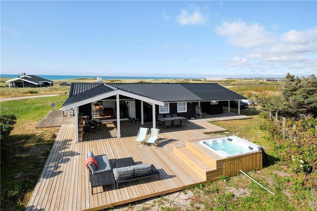 Dieses schöne Ferienhaus liegt in Skallerup Klit in unmittelbarer Nähe zum Strand. Innerhalb von fünf Minuten zu Fuß erreichen Sie Skallerup Seaside Resort u. a. mit Wellness und Römischem Bad. Südlich vom Ferienhaus liegt der malerische Ferienort Lønstrup mit Galerien, Glasbläsereien und guten Shoppingmöglichkeiten. Außerdem können Sie auch die große Wanderdüne “Rubjerg Knude” besteigen und von der Dünenkuppe den Blick über die Jammerbucht schweifen lassen.