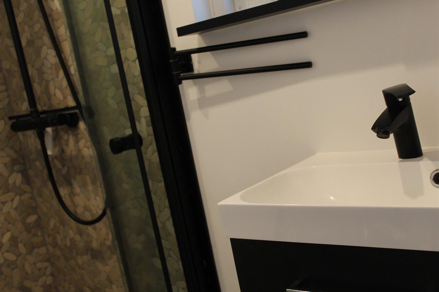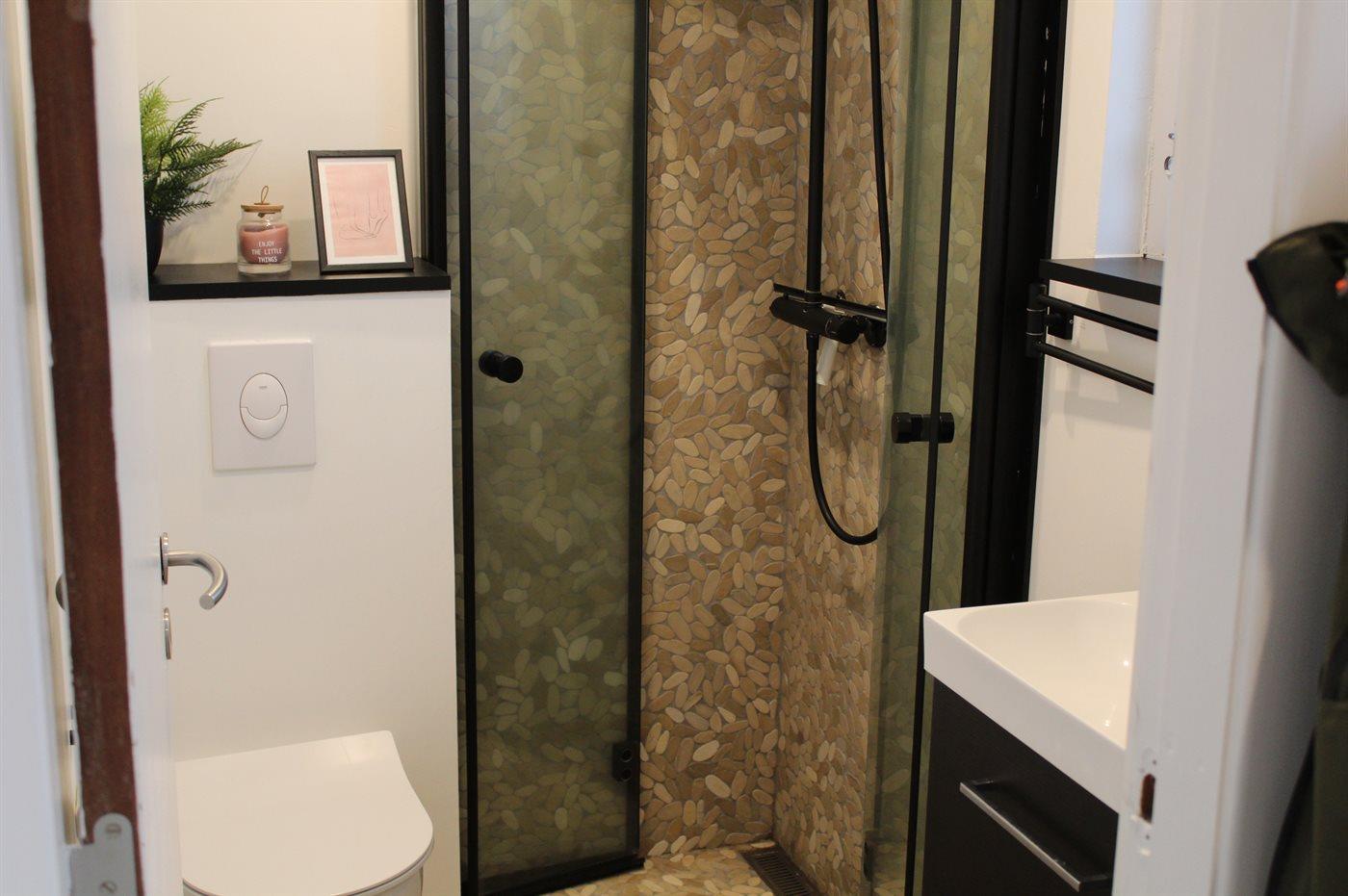 Es gibt 1 Badezimmer mit Dusche und 1 Toilette.