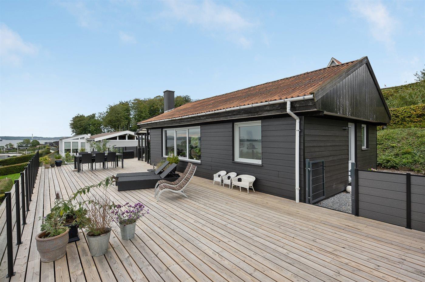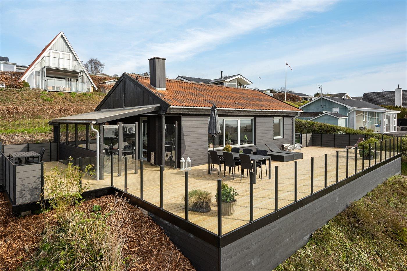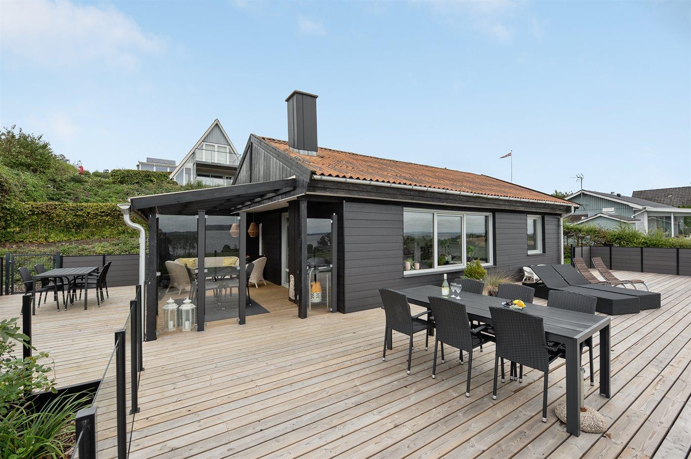 Gemütliches Ferienhaus mit Fjordblick, moderner Ausstattung und großer Terrasse in Aabenraa.