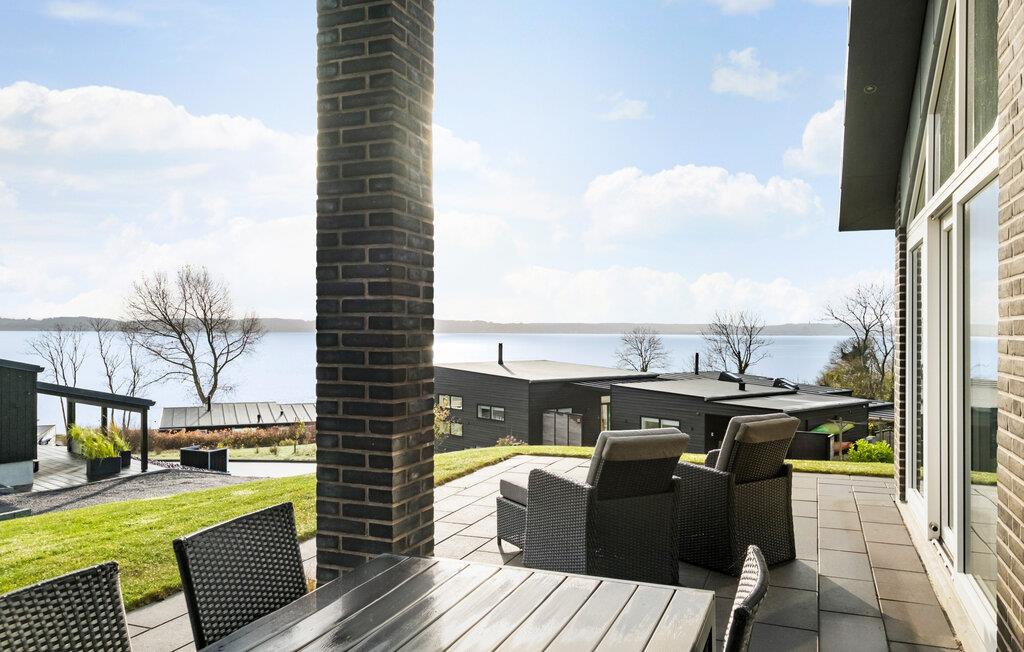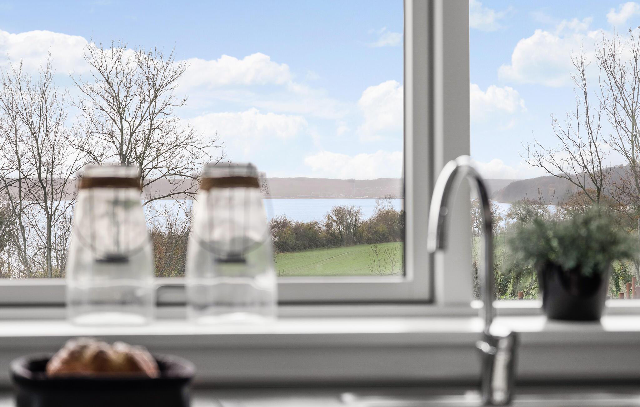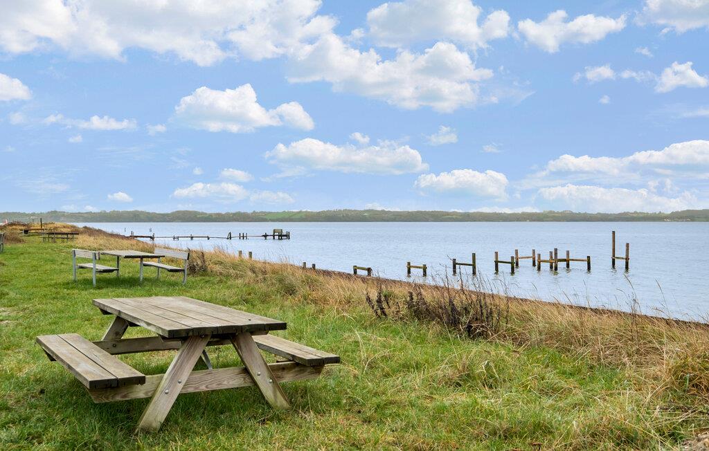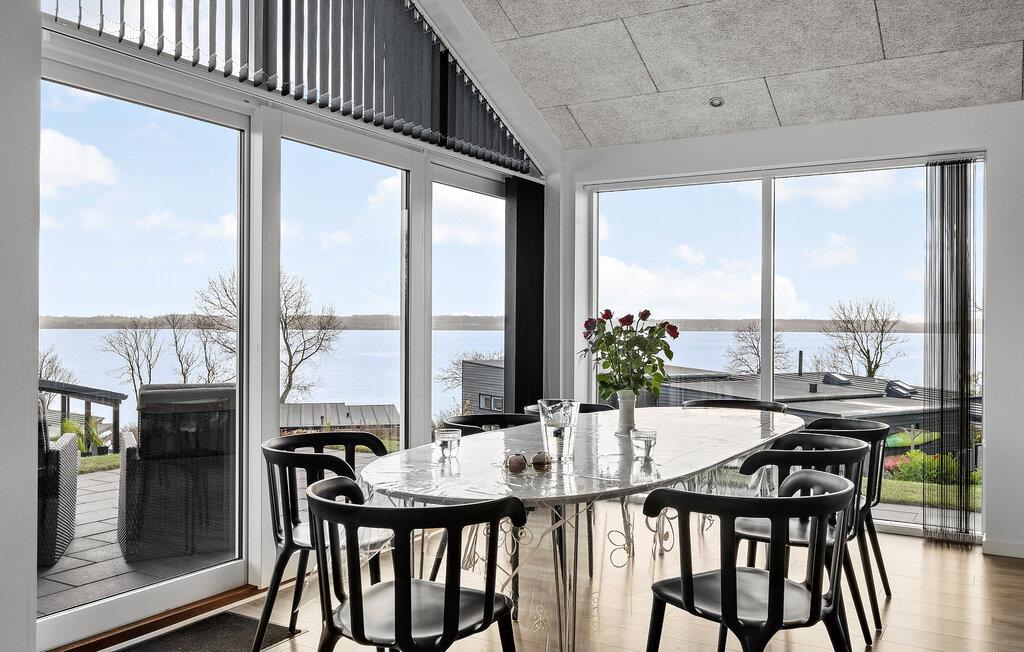 Ihr Ferienhaus am Skarrev Strand überzeugt durch seine einzigartige Lage und eine moderne Ausstattung. Das Haus bietet Ihnen eine spektakuläre Aussicht auf den Aabenraa Fjord, die Sie sowohl von der Terrasse als auch vom Essbereich aus bewundern können. Beobachten Sie den Schiffs- und Bootsverkehr, während Sie die Ruhe und Weite der Umgebung genießen. Das Ferienhaus ist mit lichtdurchfluteten Räumen gestaltet, die durch große Fensterfronten einen nahtlosen Übergang zwischen Innen- und Außenbereich schaffen. Der offene Wohnbereich mit eleganter Einrichtung lädt zum Verweilen ein. Machen Sie es sich auf der großzügigen Couch bequem oder genießen Sie gemeinsame Mahlzeiten am stilvollen Esstisch mit Panoramablick.
