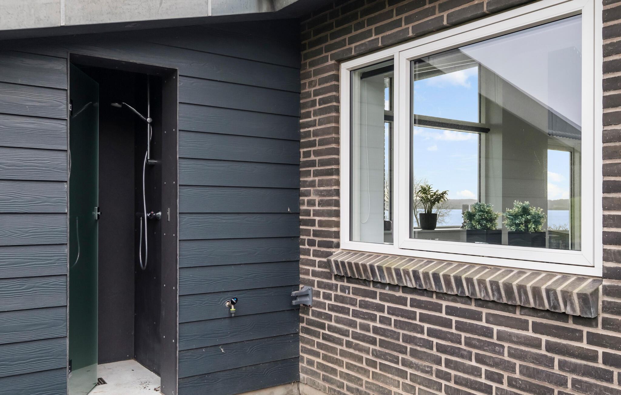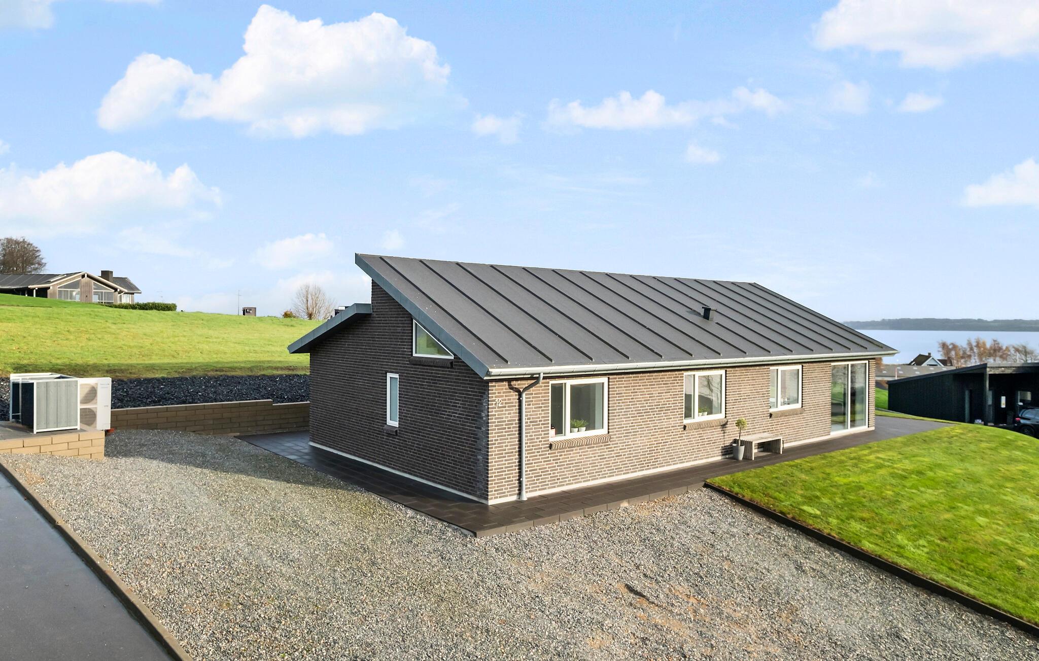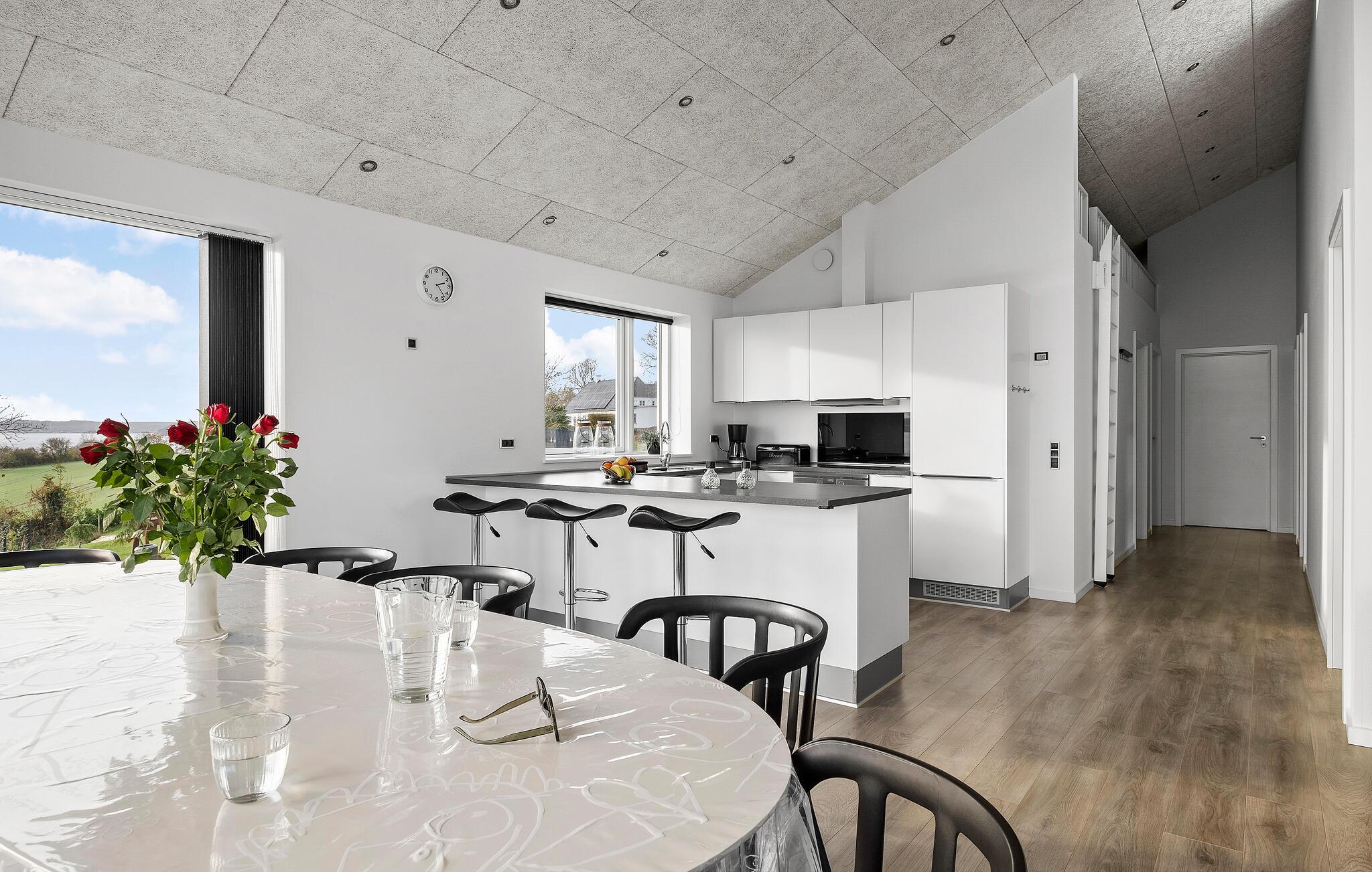 Ihr Ferienhaus am Skarrev Strand überzeugt durch seine einzigartige Lage und eine moderne Ausstattung. Das Haus bietet Ihnen eine spektakuläre Aussicht auf den Aabenraa Fjord, die Sie sowohl von der Terrasse als auch vom Essbereich aus bewundern können. Beobachten Sie den Schiffs- und Bootsverkehr, während Sie die Ruhe und Weite der Umgebung genießen. Das Ferienhaus ist mit lichtdurchfluteten Räumen gestaltet, die durch große Fensterfronten einen nahtlosen Übergang zwischen Innen- und Außenbereich schaffen. Der offene Wohnbereich mit eleganter Einrichtung lädt zum Verweilen ein. Machen Sie es sich auf der großzügigen Couch bequem oder genießen Sie gemeinsame Mahlzeiten am stilvollen Esstisch mit Panoramablick.
