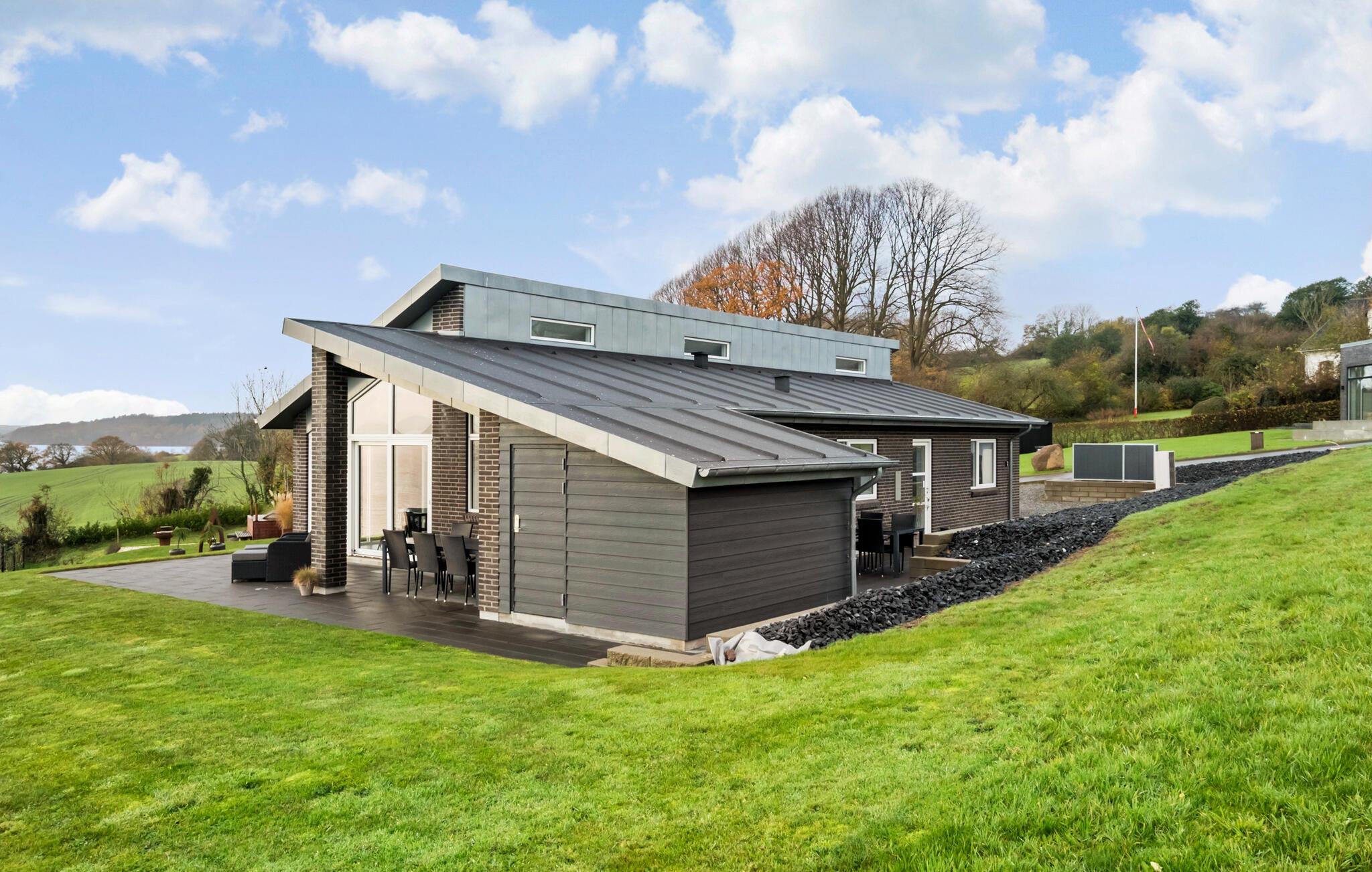 Modernes Ferienhaus mit Panoramablick am Skarrev Strand in Dänemark für erholsame Urlaubstage.
