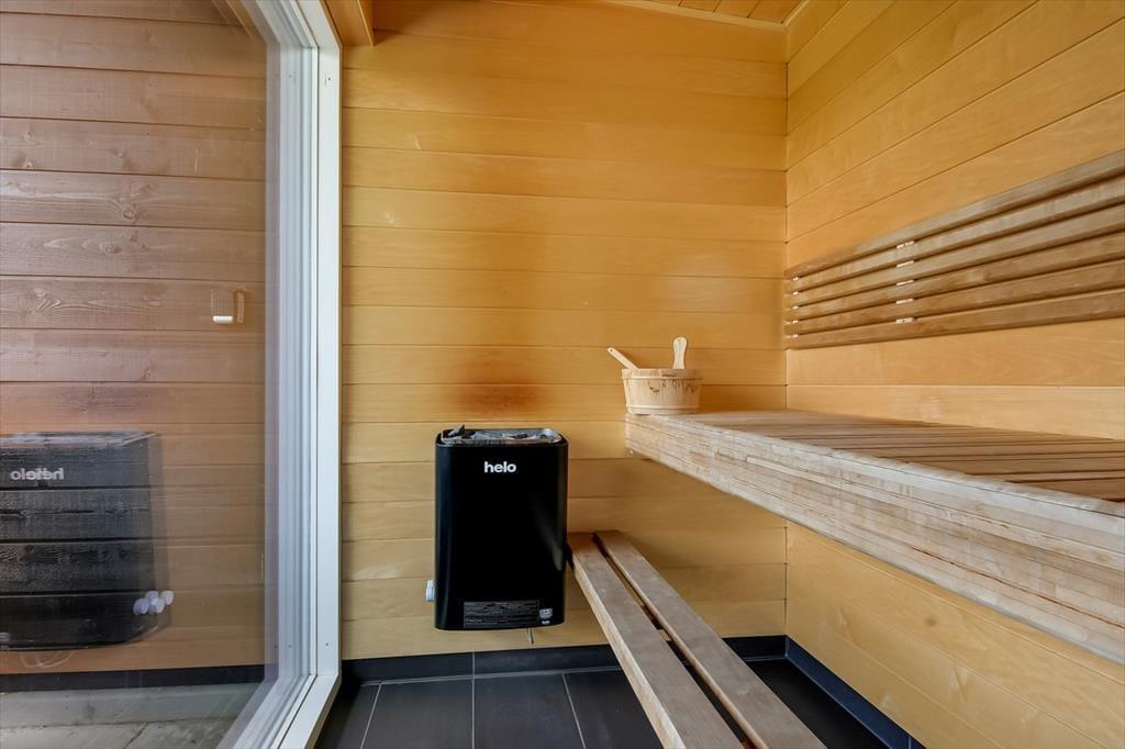 Da das Ferienhaus erst im Jahr 2022 erbaut wurde, dürfen Sie sich auf Urlaubstage mit modernem Ambiente freuen. Zusätzlich zum Haupthaus erwartet Sie ein Nebengebäude, das sich im selben hellen und einladenden Stil präsentiert. Es verfügt neben Schlafplätzen auch über ein eigenes kleines Bad, sodass es eine gute Basis für Freunde oder Familienmitglieder bietet, die Wert auf Privatsphäre legen. Das Ferienhaus selber umfasst ein großes Badezimmer, einen schönen Wohnraum mit viel Tageslichteinfall, eingebautem Kaminofen sowie eine gut ausgestattete, offene Küche. Das Badezimmer bedarf ein wenig mehr Erwähnung, da es neben einer tollen Duschnische eine Sauna mit einem Panoramafenster und eine Glastür umfasst, durch die Sie direkt hinaus zum Außenwhirlpool gelangen.