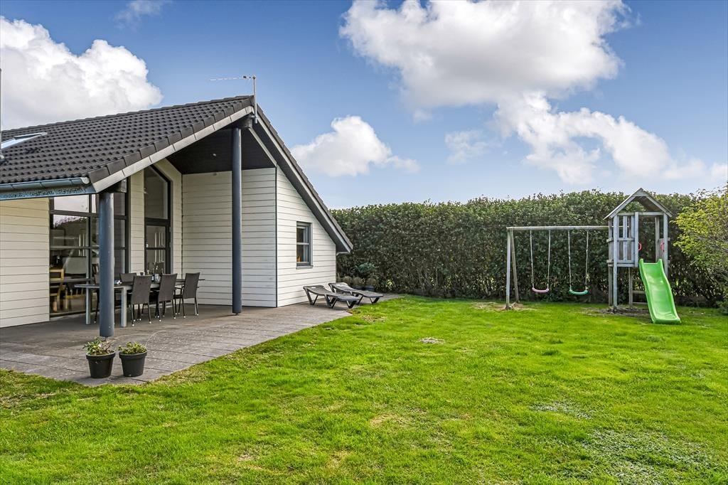 Sobald die Sonne scheint, wirst du dich auf der Terrasse am wohlsten fühlen. Hier kannst du mit einer Tasse Kaffee in der Hand die herrliche Aussicht genießen und den Tag entspannt beginnen. Tagsüber lädt die Terrasse zu gemeinsamen Mahlzeiten und geselligen Stunden unter freiem Himmel ein. Die naturnahe Umgebung sorgt für eine wunderbar ruhige Atmosphäre, und auf den kleinen Wegen rund ums Haus kannst du die Schönheit der Westjütländischen Landschaft auf dich wirken lassen.