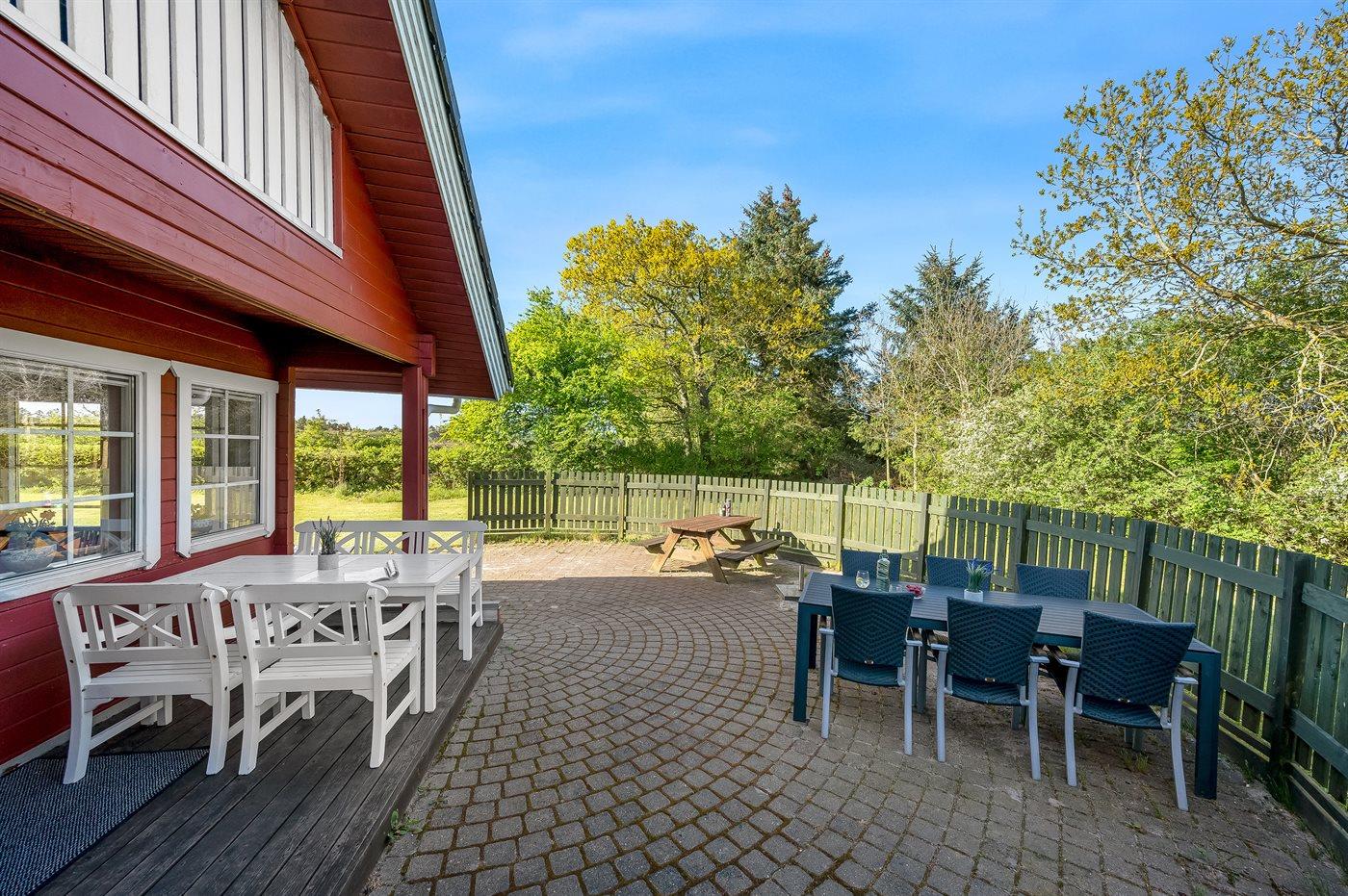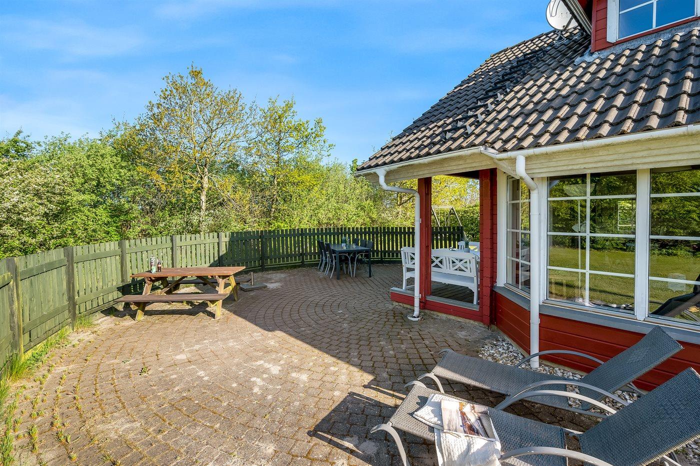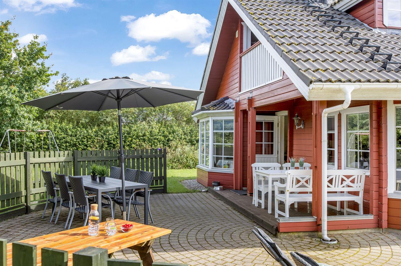 Tolles Ferienhaus mit großer Westterrasse. Das Haus hat zudem eine Ostterrasse, auf der Sie Ihren Morgenkaffee genießen können. Das Ferienhaus verfügt über ein großes Grundstück mit Schaukel für Kinder. Nicht weit entfernt befindet sich ein Spielplatz. Etwa 10 m² des Grundstücks sind eingezäunt.