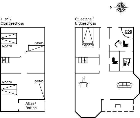 Die Schlafplätze verteilen sich auf 3 Schlafräume. 6 Schlafplätze in Doppelbetten. 2 Schlafplätze in Einzelbetten.