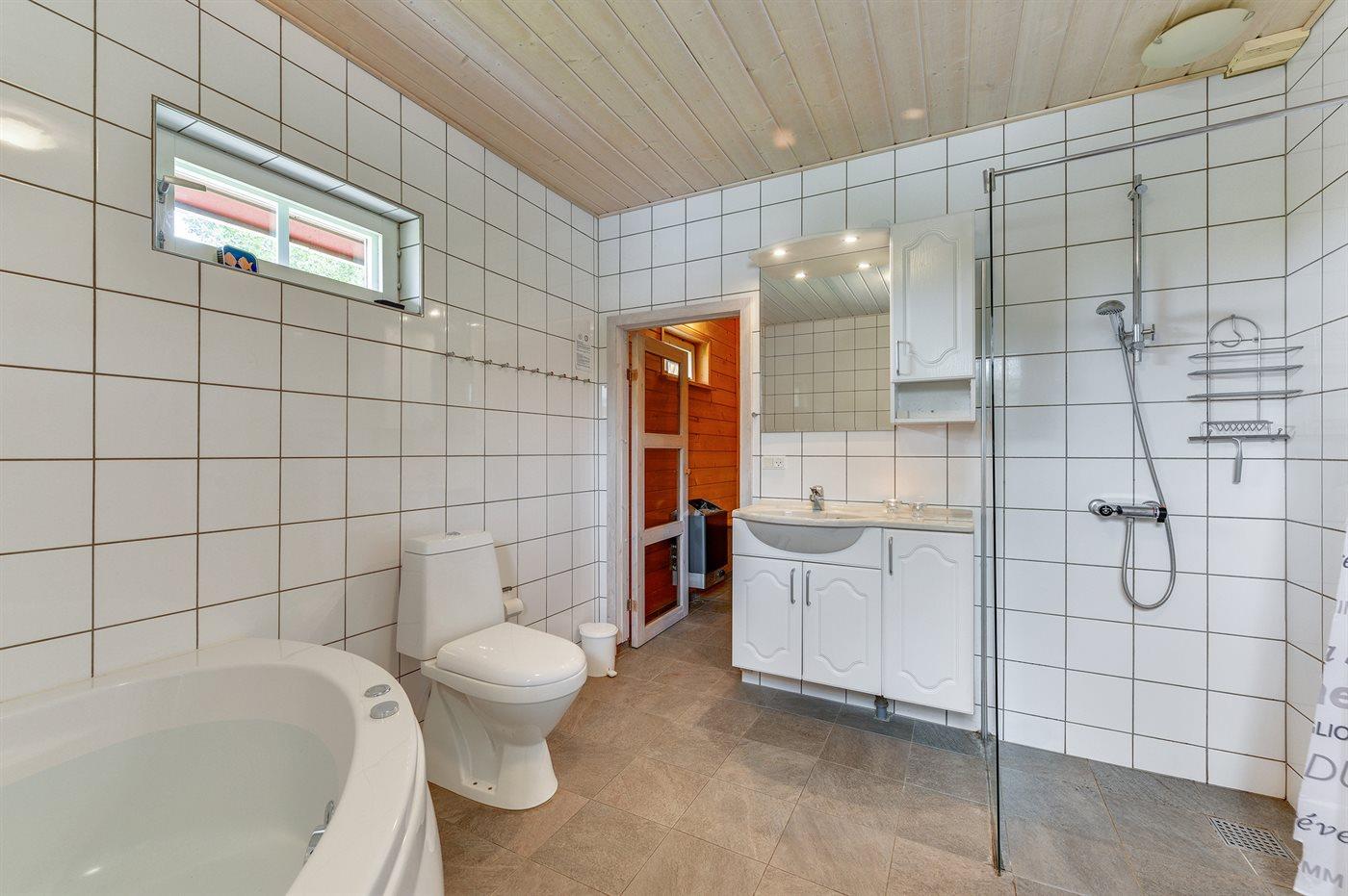 Es gibt 1 Badezimmer mit Duschnische und 2 Toiletten, davon 1 Gästetoilette. Fußbodenheizung in 1 Badezimmer. Es steht eine Sauna zur Verfügung in der Sie sich so richtig entspannen können.