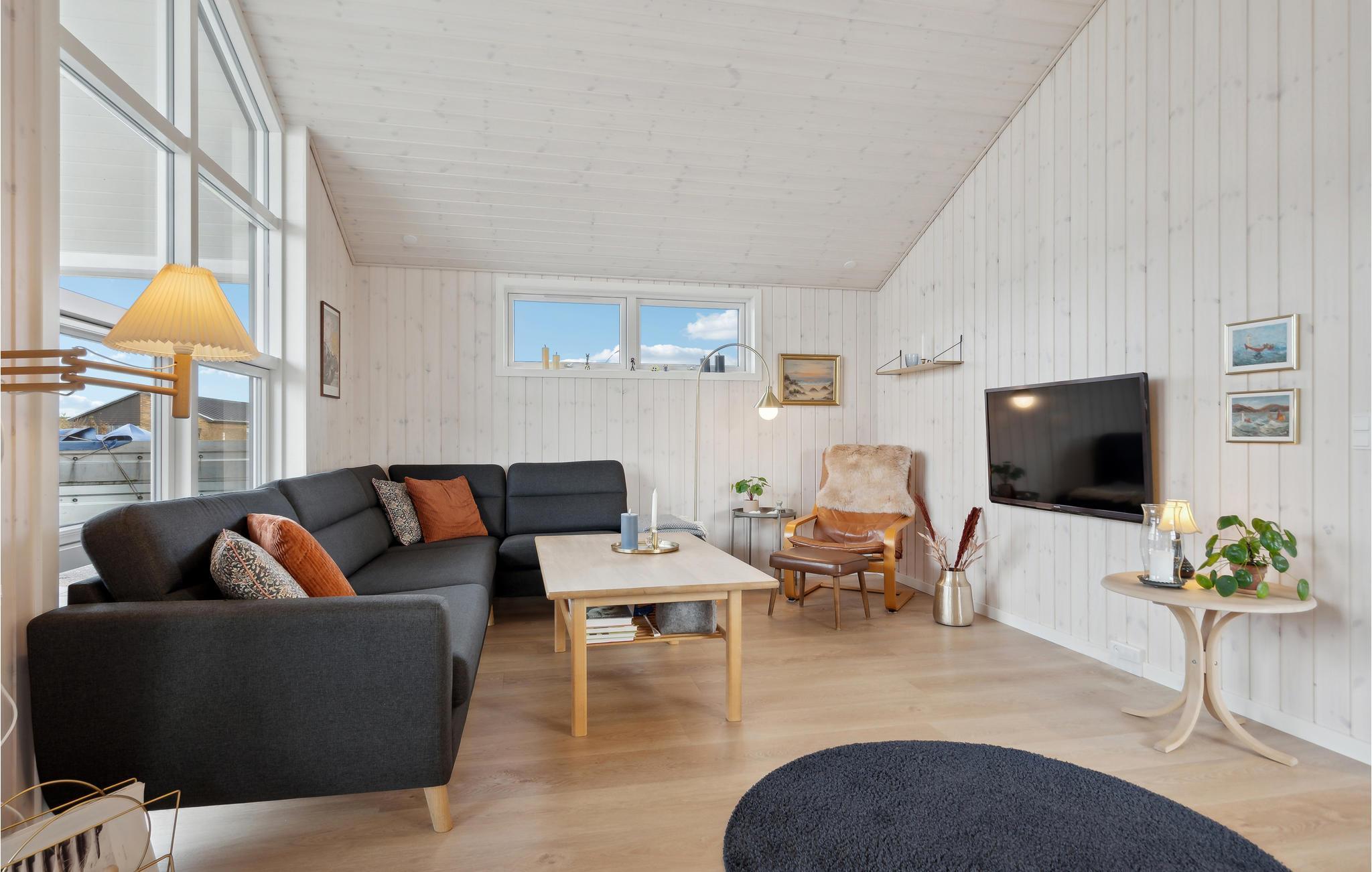 Modernes Ferienhaus nahe Skaven Strand mit Sauna, Whirlpool und Kaminofen für erholsame Urlaubstage.