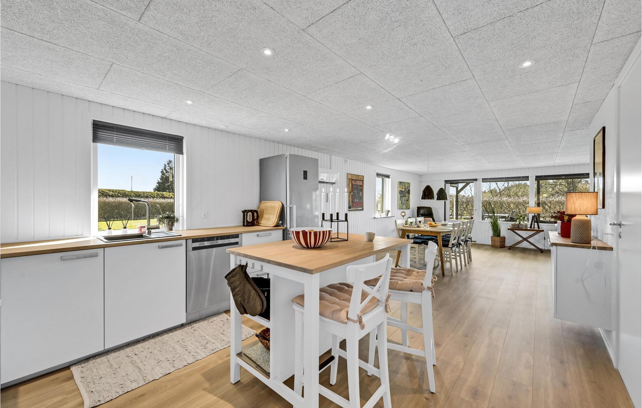 Erleben Sie einen erholsamen Urlaub in dem einladenden Haus, das seine Gäste nur wenige Schritte vom Fjord auf einem gepflegten Grundstück begrüßt. Genießen Sie schon beim Aufwachen einen schönen Blick ins Freie, lassen Sie beim Kochen den Blick über den Garten schweifen und entspannen Sie nach einem Strandspaziergang ausgiebig im ansprechenden Wohnbereich. Feuern Sie abends im Kaminofen an und plaudern Sie noch lange auf dem großzügigen Sofa.