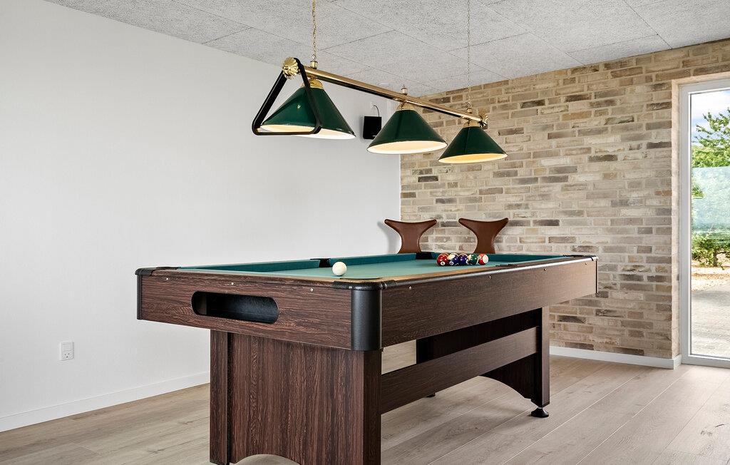 Dieses landschaftlich schön gelegene Haus besticht durch das harmonische Zusammenspiel von rustikaler Natürlichkeit mit modernem Stil. Helle Farben, Ziegelsteinoptik, das große Sitzfenster mit Blick über den Fjord und der Kaminofen schaffen eine besonders behagliche Atmosphäre. Entspannen Sie sich auf der großen Sofalandschaft bei einer Tasse Kaffee oder vertiefen Sie sich in ein gutes Buch. Wenn Sie Lust auf eine sportliche Herausforderung haben, spielen Sie eine Partie Billard und stoßen anschließend auf den Gewinner an.