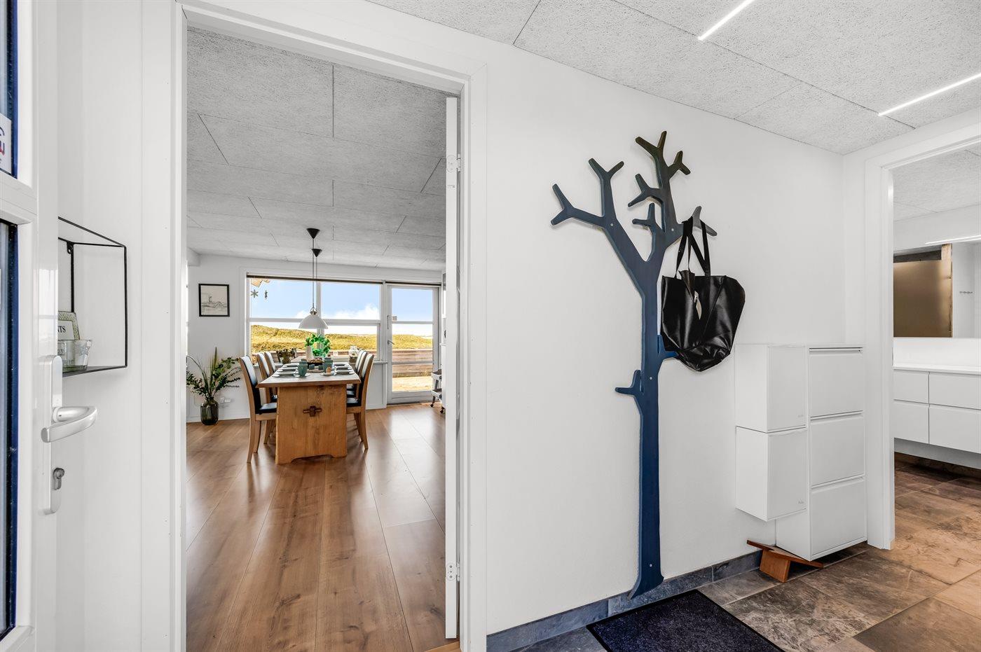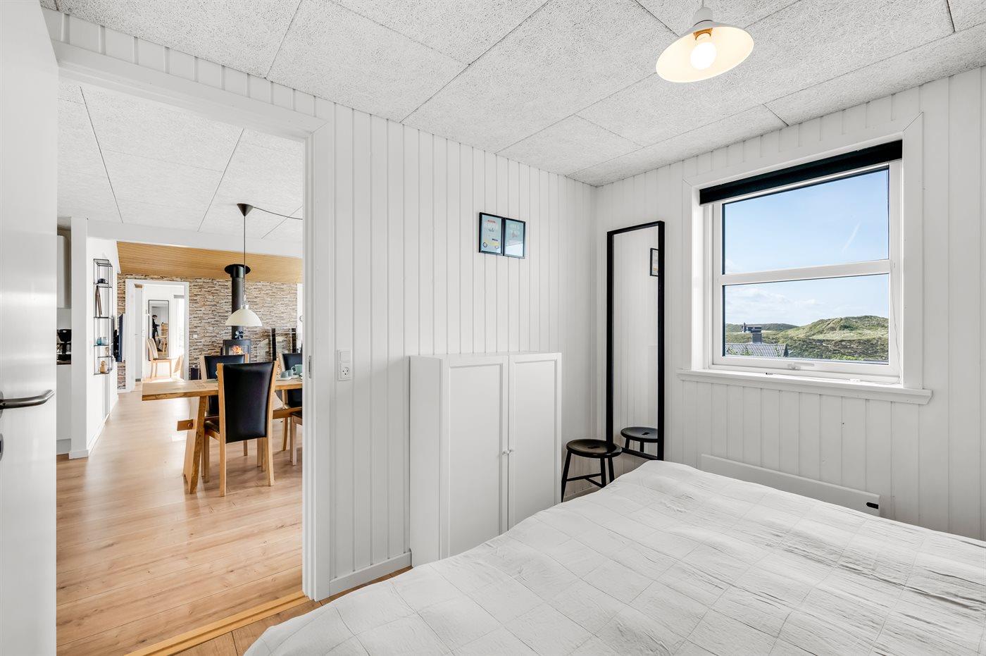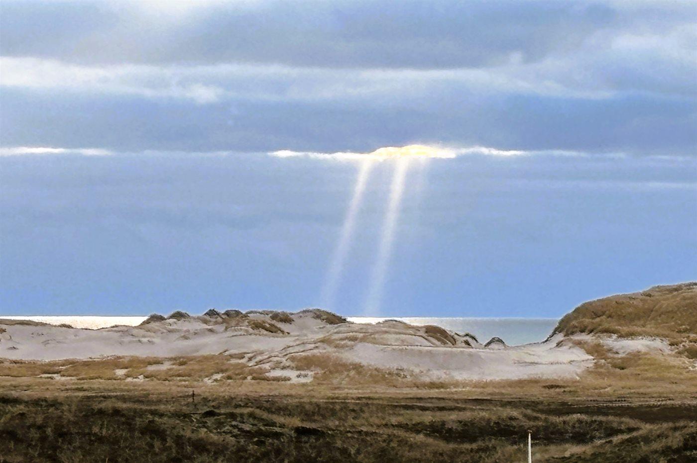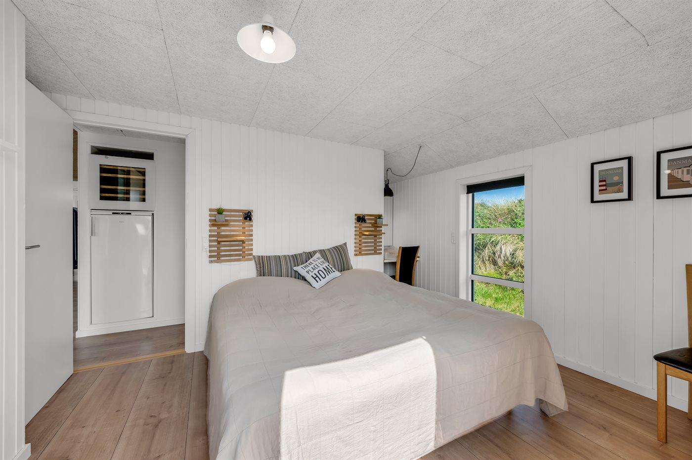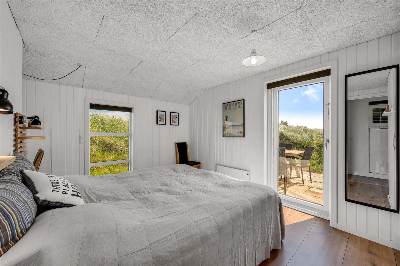 Wenn ihr auf der großen, geschlossenen Terrasse des Ferienhauses sitzt, habt ihr nach Westen einen Blick über die Dünenlandschaft und könnt durch die Senken der Dünen das Meer sehen. Nach Osten bietet sich euch der schönste Blick über den Ringkøbing Fjord, und schaut ihr nach Süden, seht ihr das unter Naturschutz stehende westjütländische Dünengebiet – ein absolutes Wow-Erlebnis.