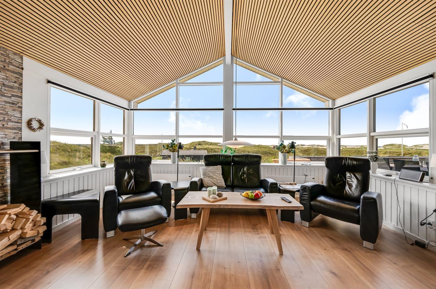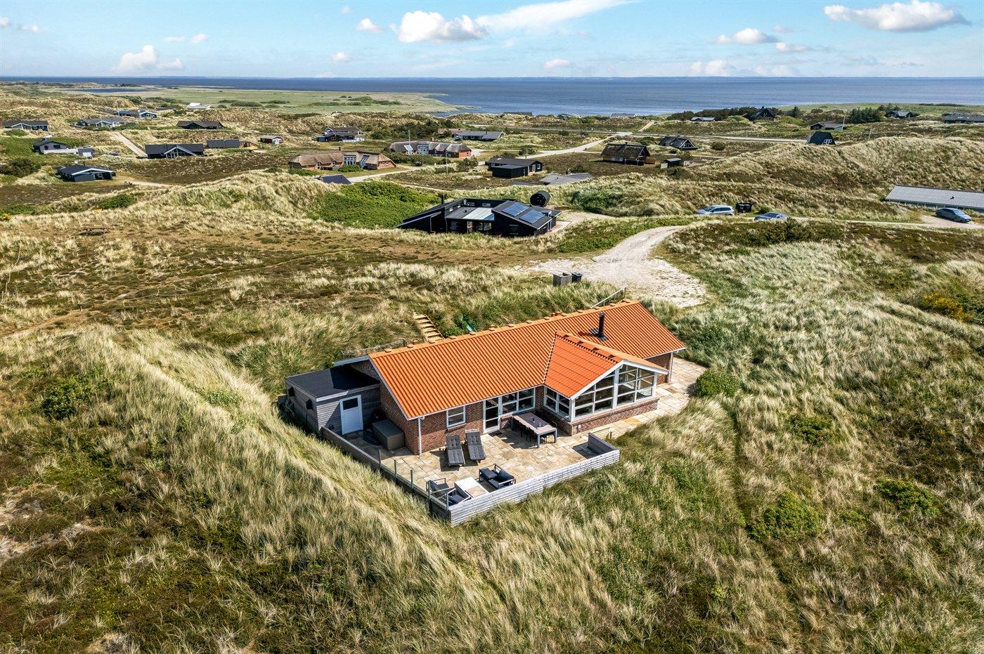 Ein traumhaftes Ferienhaus auf den Dünen Westjütlands mit Blick auf Nordsee, Ringkøbing Fjord und Naturschutzgebiet.