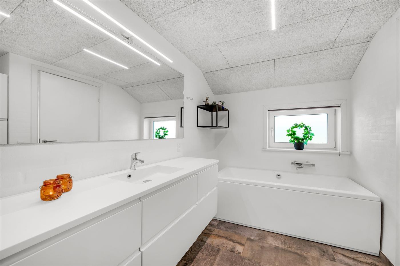 Die beiden Badezimmer des Ferienhauses befinden sich jeweils an einem Ende des Hauses. Im größeren der beiden Bäder könnt ihr den Alltag völlig hinter euch lassen – nehmt ein entspannendes Bad in der Wanne, ein gutes Buch in der Hand… und vielleicht ein kühles Glas Wein ??