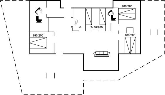 Die Schlafplätze verteilen sich auf 4 Schlafräume. 6 Schlafplätze in Doppelbetten. 2 Schlafplätze in Einzelbetten. Ferner steht ein Kinderbett zur Verfügung.