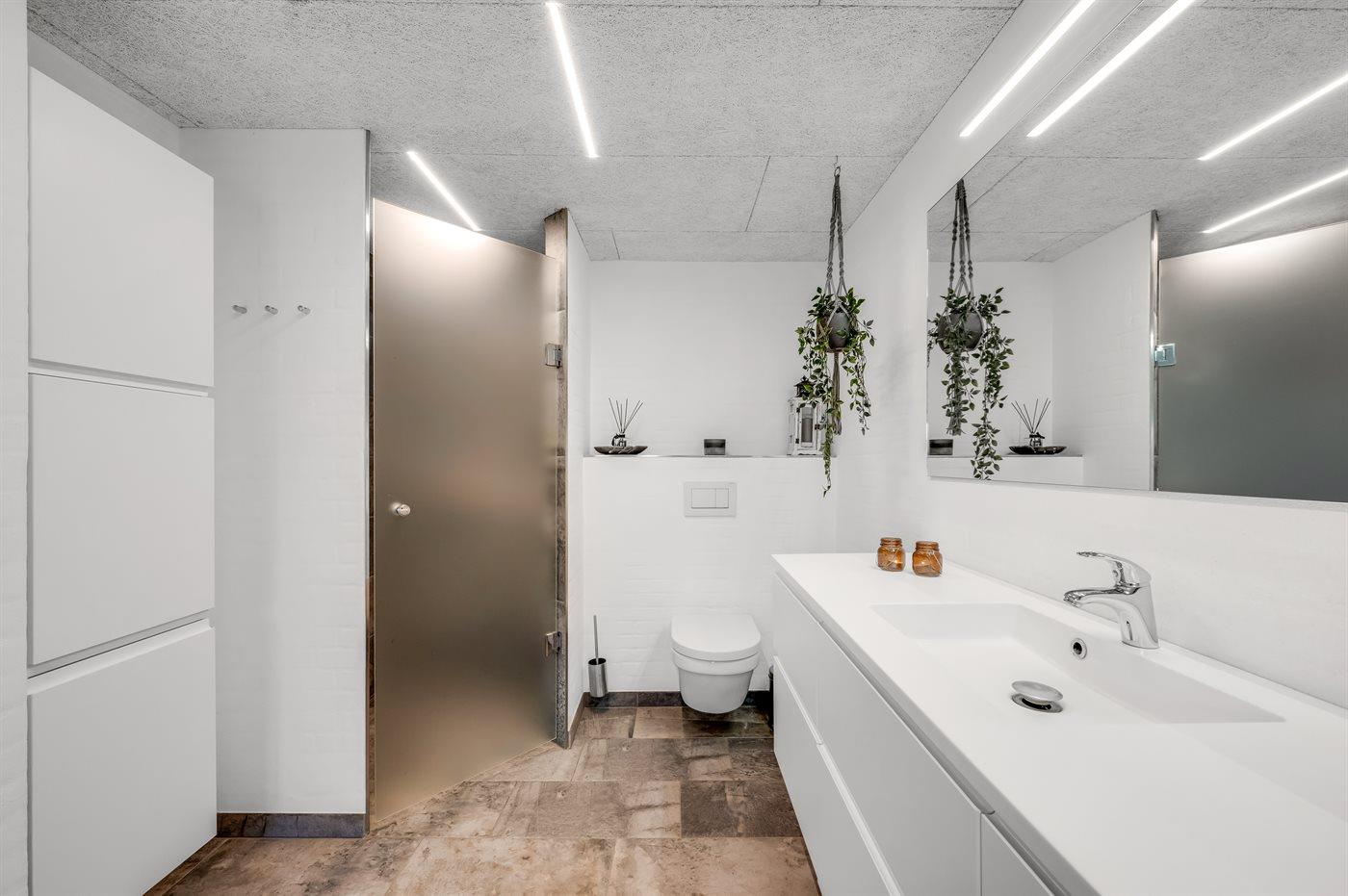 Es gibt 2 Badezimmer mit Duschnische und 2 Toiletten. Fußbodenheizung in 2 Badezimmern.. Badewanne.