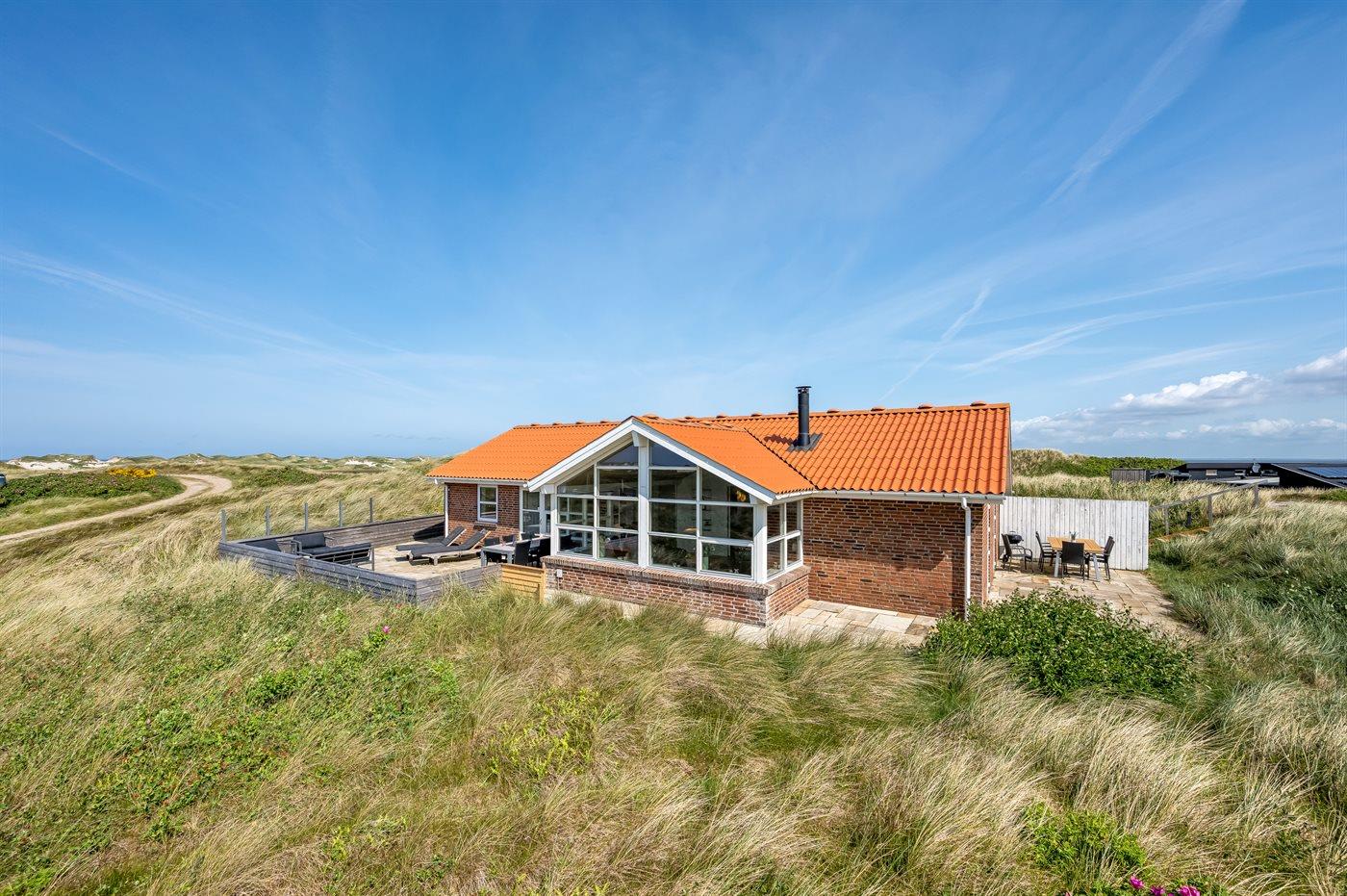 Auf der Spitze einer der schönen Dünen der Nordsee heißt euch dieses traumhafte Ferienhaus mit einem der herrlichsten Ausblicke Westjütlands herzlich willkommen.
