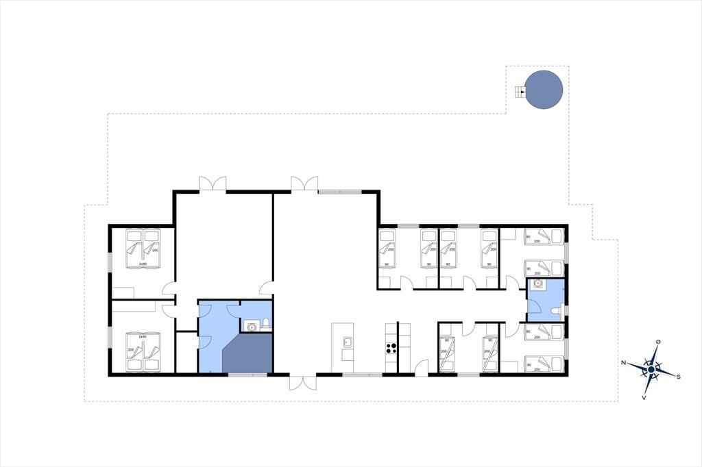 Mit sieben Schlafräumen erwartet dich und deine Lieben richtig viel Platz. Sechs Räume verfügen über Doppelbetten, die bei Bedarf zu Einzelbetten auseinandergeschoben werden können. Im siebten Schlafraum stehen zwei Etagenbetten mit insgesamt vier Schlafplätzen bereit.
