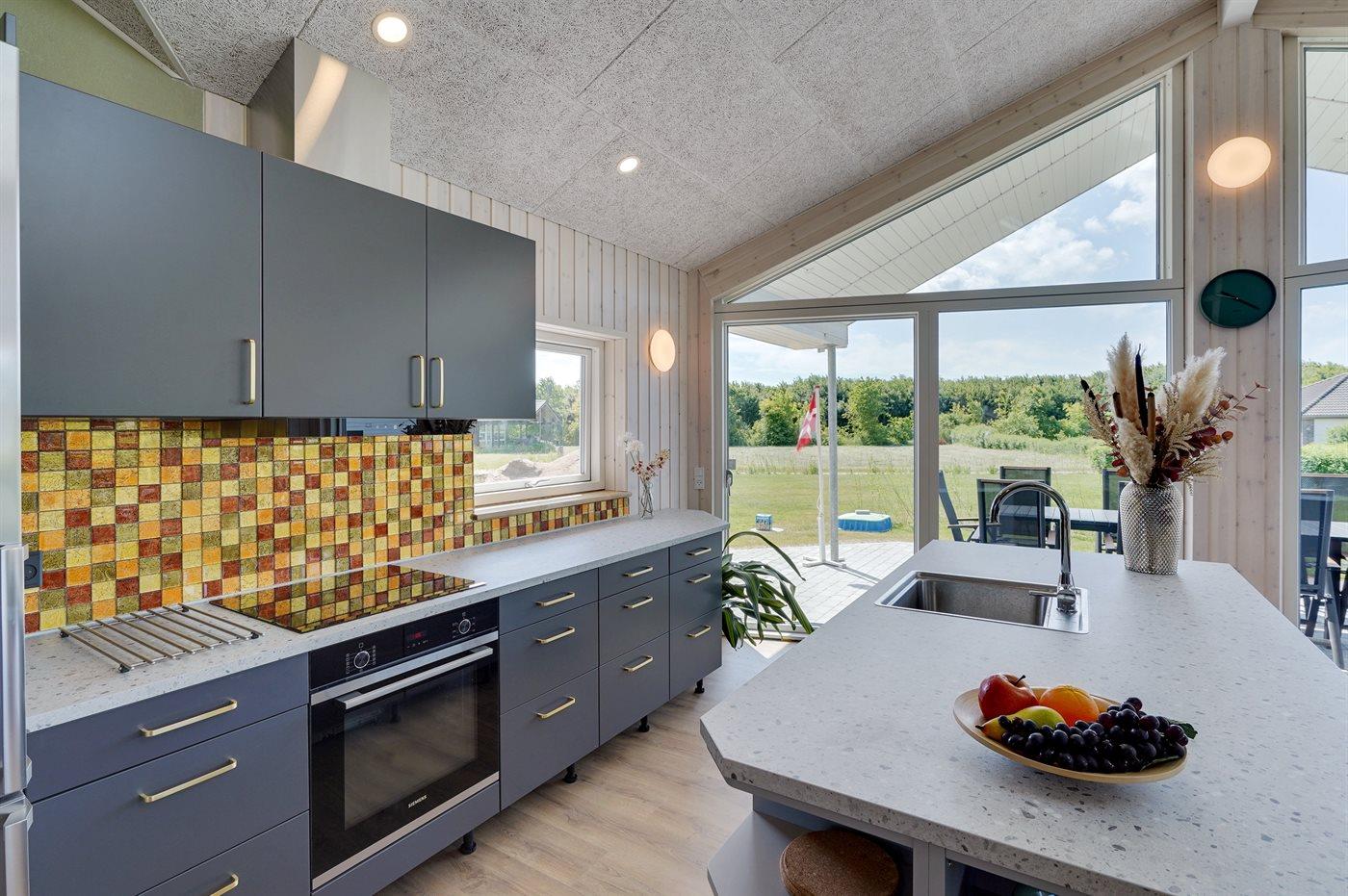 Dieses besonders schöne Ferienhaus eignet sich für den aktiven Urlaub und liegt in dem gemütlichen Feriengebiet Skovmose - nicht weit von einem schönen Sandstrand entfernt.