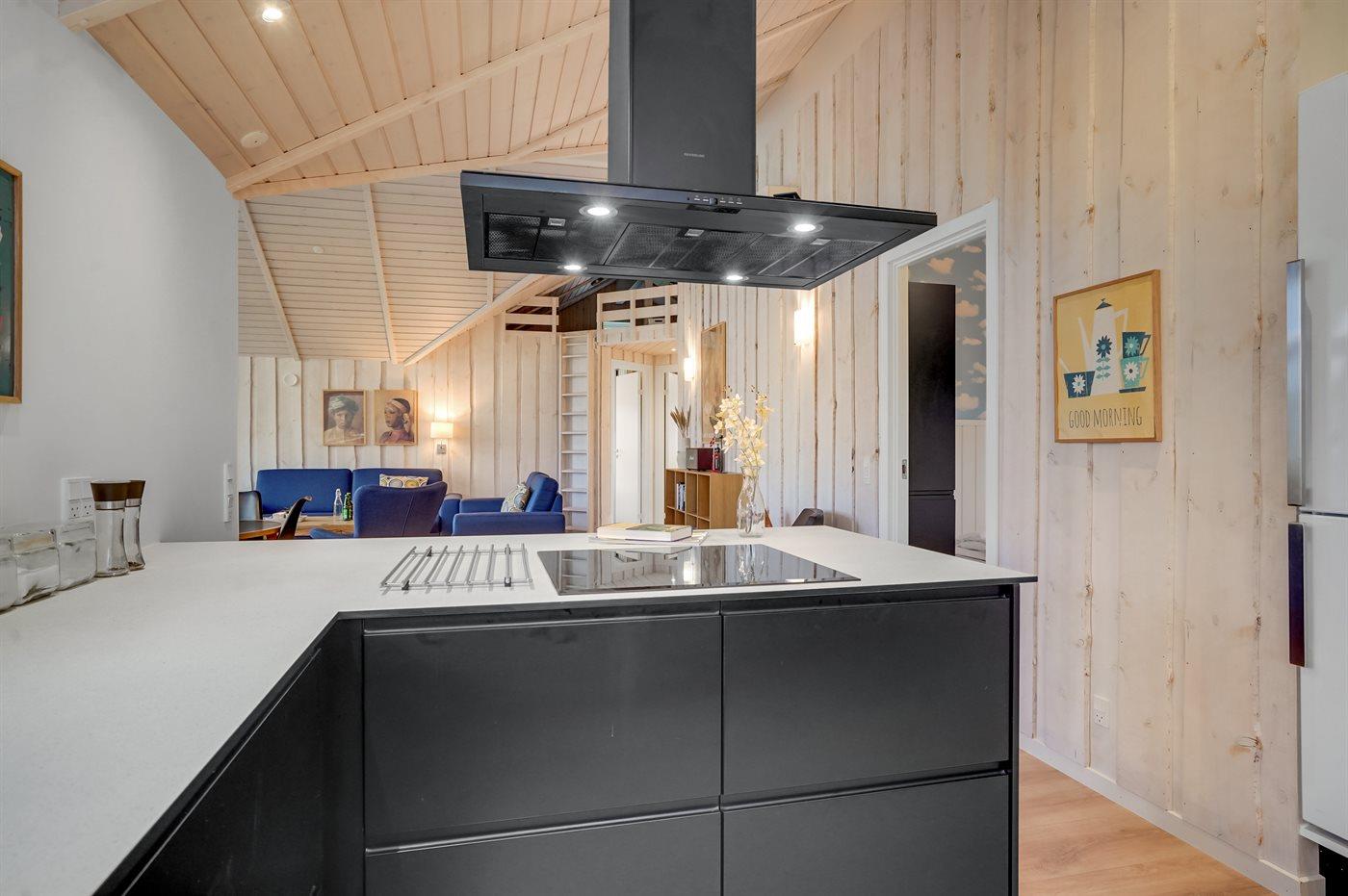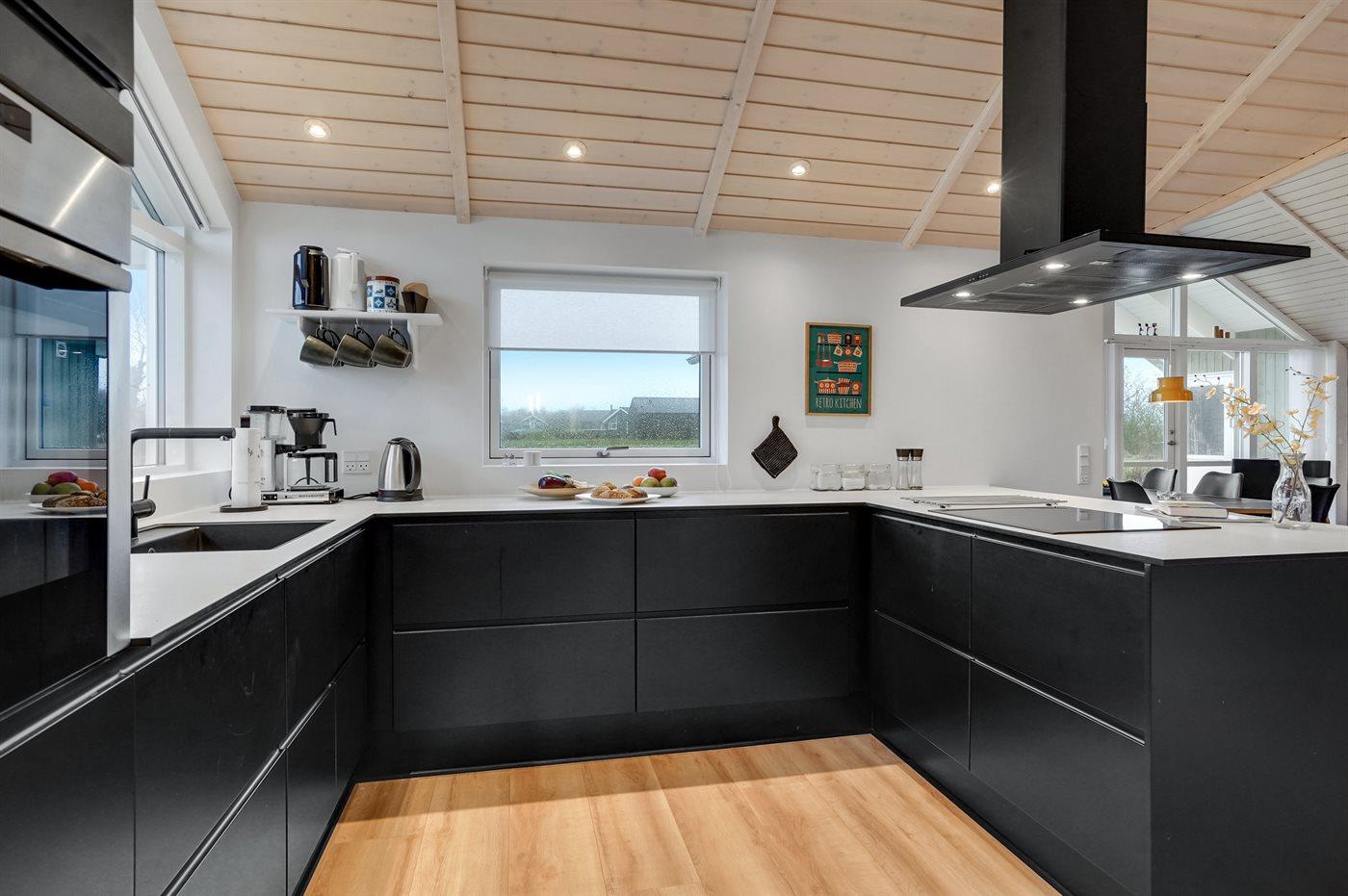 Die Küche ist mit Kühlschrank ausgestattet. Außerdem gibt es 4 Induktions-Kochzonen, Umluftofen, Mikrowelle sowie Geschirrspüler.
