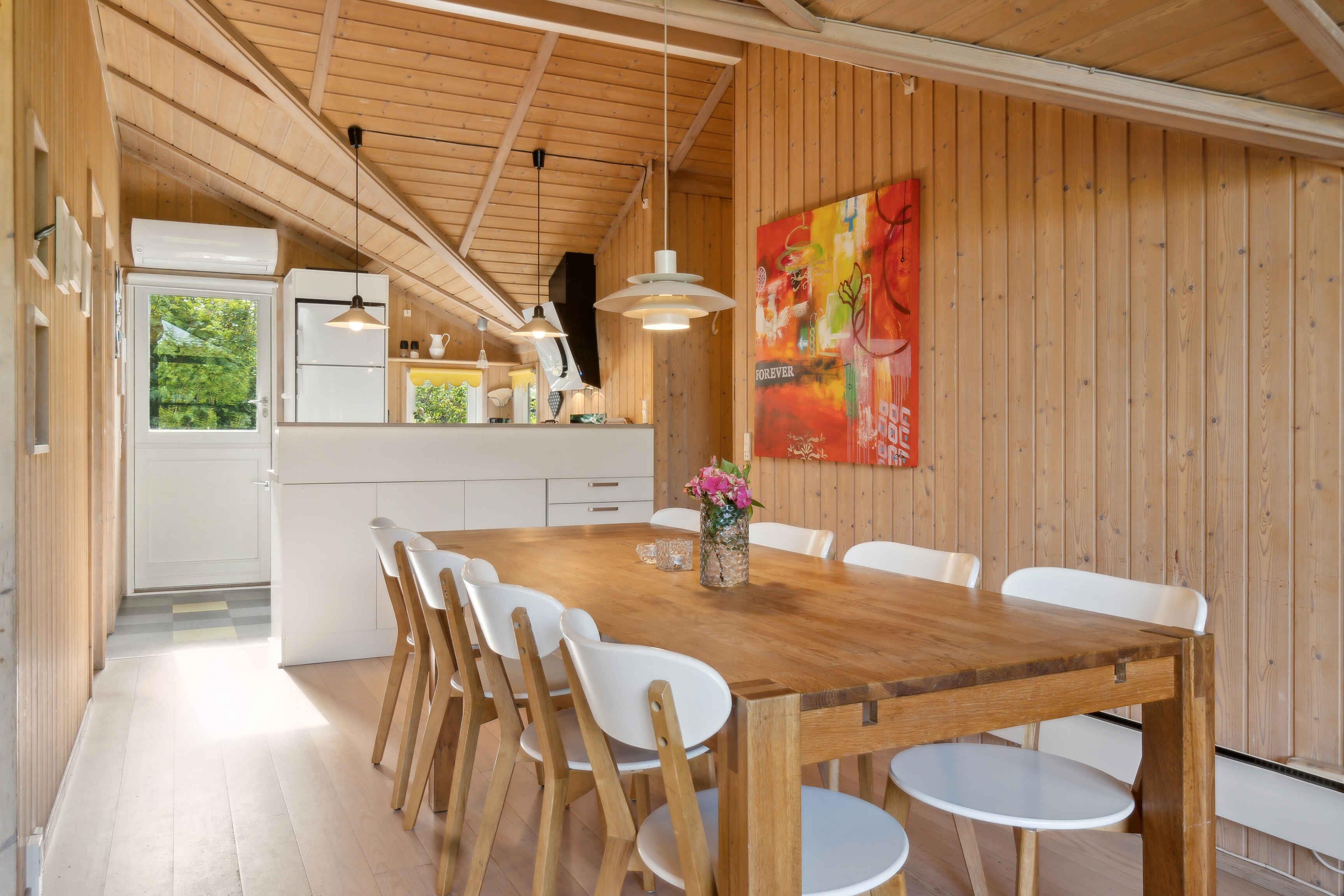 **Tysk:** Ferienhaus am Stillinge Strand Willkommen in einem charmanten Ferienhaus am wunderschönen Stillinge Strand. Hier haben Sie die einzigartige Gelegenheit, Ihren Urlaub in privaten und idyllischen Umgebung zu genießen. Das eingezäunte Grundstück bietet zahlreiche geschützte Plätze und Sonneninseln, die perfekt zum Entspannen und Wohlfühlen sind. Für die Aktiven gibt es sowohl einen Lagerfeuerplatz, Schaukeln und eine Sandkiste für die Kleinen, als auch ein Kajak zur freien Benutzung auf eigene Verantwortung. Das Ferienhaus liegt nur 500 Meter vom Wasser und 200 Meter vom gemütlichen Strandzentrum entfernt, wo Sie Restaurants, Eisdielen und einen Lebensmittelladen finden. Das Haus ist gut eingerichtet mit einer Küche, die offen mit dem Ess- und Wohnbereich verbunden ist, was einen hellen und geräumigen Gemeinschaftsbereich schafft. Das Badezimmer ist mit einer Dusche, einem Whirlwanne und einer Sauna ausgestattet, was zusätzlichen Luxus für Ihren Urlaub bietet. Die Schlafplätze sind wie folgt verteilt: ein Schlafzimmer mit einem Doppelbett, zwei Schlafzimmer mit jeweils zwei Betten, ein Schlafzimmer mit einem Hochbett für zwei Personen und eine Alcove im Wohnzimmer, die als 140 cm breites Doppelbett genutzt werden kann. Bitte beachten Sie, dass die Einzelbetten 70 cm breit sind. Obwohl das Haus 10 Schlafplätze hat, ist die maximale Anzahl der Gäste auf 8 Personen begrenzt. Auch an die Kleinen wurde gedacht, mit einem Hochstuhl, einem Babybett und einer Babybadewanne zur Verfügung. Unterhaltung ist gesichert mit einem Fernseher, der sowohl dänische als auch deutsche Kanäle anbietet. Stillinge Strand ist bekannt für seinen kinderfreundlichen Sandstrand, der mit der Blauen Flagge ausgezeichnet ist. Die Umgebung bietet gute Wandermöglichkeiten entlang der Küste. Es wird empfohlen, den Bus vom Strandzentrum zum Mullerup Hafen zu nehmen und entlang der Küste zurück zu gehen. Es ist eine zweistündige Wanderung. In der Nähe gibt es viele spannende Ausflugsziele. Besuchen Sie zum Beispiel das Panzermuseum East, die Gärten von Birkegården oder die UNESCO-anerkannte Wikingerburg Trelleborg. Es sind nur 10 Minuten Fahrt nach Slagelse, wo Sie viele Cafés und gute Einkaufsmöglichkeiten finden. Für einen Tagesausflug können Sie den Freizeitpark Bon Land, den Knuthenborg Safaripark, Kopenhagen und viele weitere interessante Ziele besuchen. Dieses Ferienhaus am Stillinge Strand bietet die perfekte Kombination aus Entspannung, Aktivitäten und Ausflugsmöglichkeiten, was es zu dem idealen Urlaubsort für Groß und Klein macht.