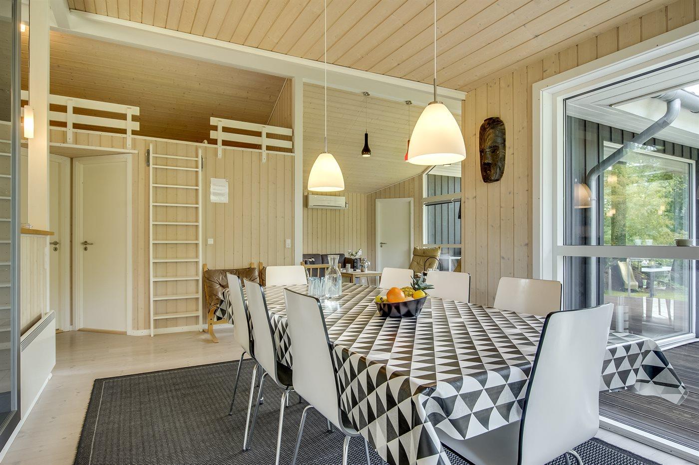 Das Ferienhaus eignet sich für 8 Personen sowie 1 Kleinkind bis zu 3 Jahren. Die Ferienunterkunft hat eine Wohnfläche von 102 m² und wurde 2007 gebaut. Haustiere dürfen nicht mitgebracht werden. Die Ferienunterkunft ist mit energiesparender Wärmepumpe ausgestattet. Die Ferienunterkunft ist mit Waschmaschine ausgestattet. Wäschetrockner. Tiefkühlmöglichkeit mit 84 Liter Nutzinhalt. Es gibt außerdem einen Kaminofen. Für die jüngsten Feriengäste ist 1 Kinderhochstuhl vorhanden.