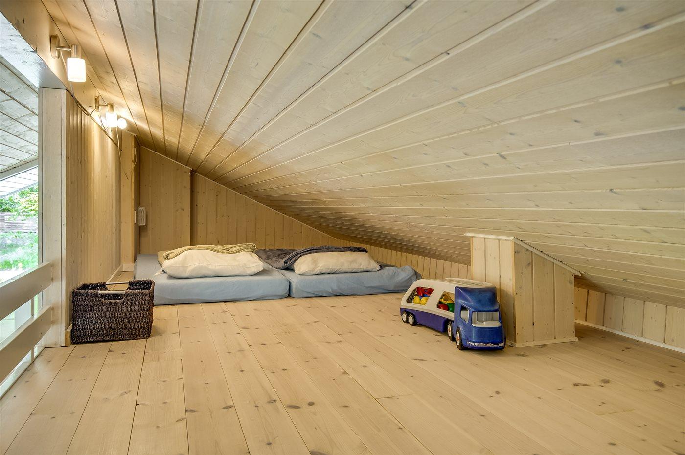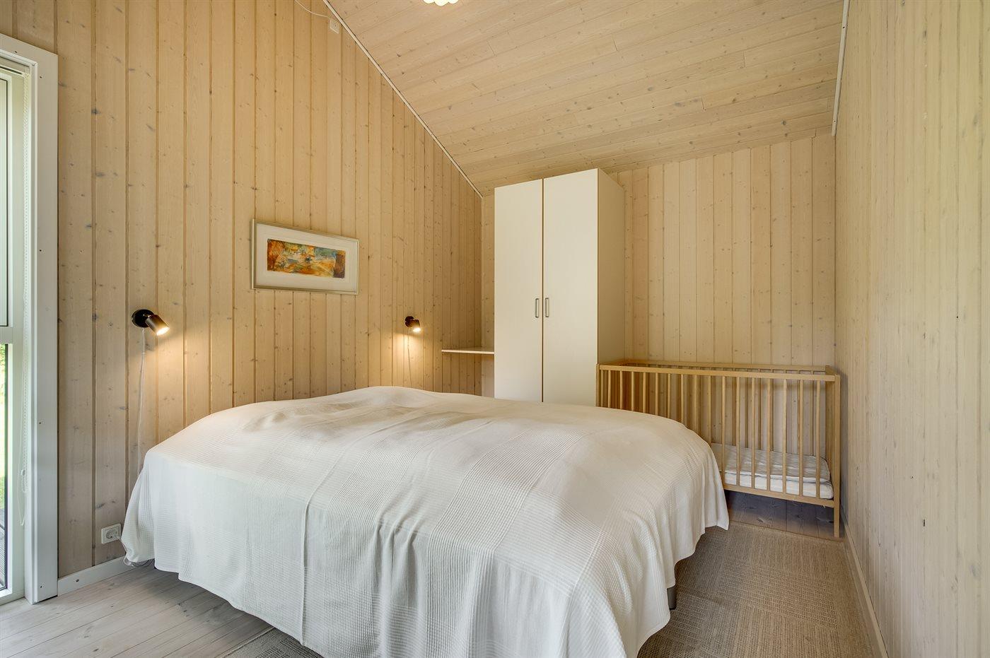 Die Schlafplätze verteilen sich auf 3 Schlafräume. 6 Schlafplätze in Doppelbetten. 2 Schlafplätze auf Matratzen. 2 von diesen Schlafplätzen befinden sich im offenen Obergeschoss. Ferner steht ein Kinderbett zur Verfügung.