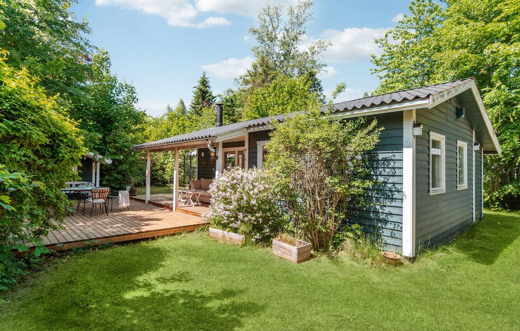 Gemütliches Ferienhaus nahe Smidstrup Strand mit Holzterrasse, Wintergarten und Feuerstelle für entspannte Urlaubsmomente.