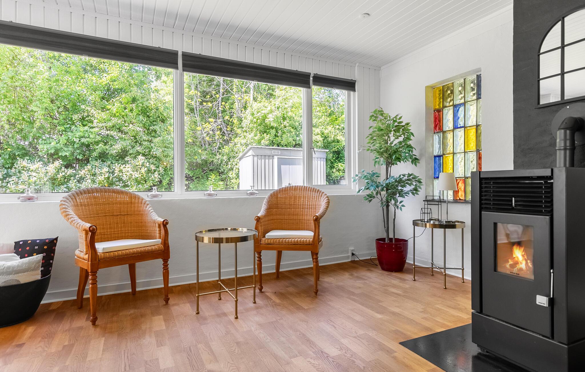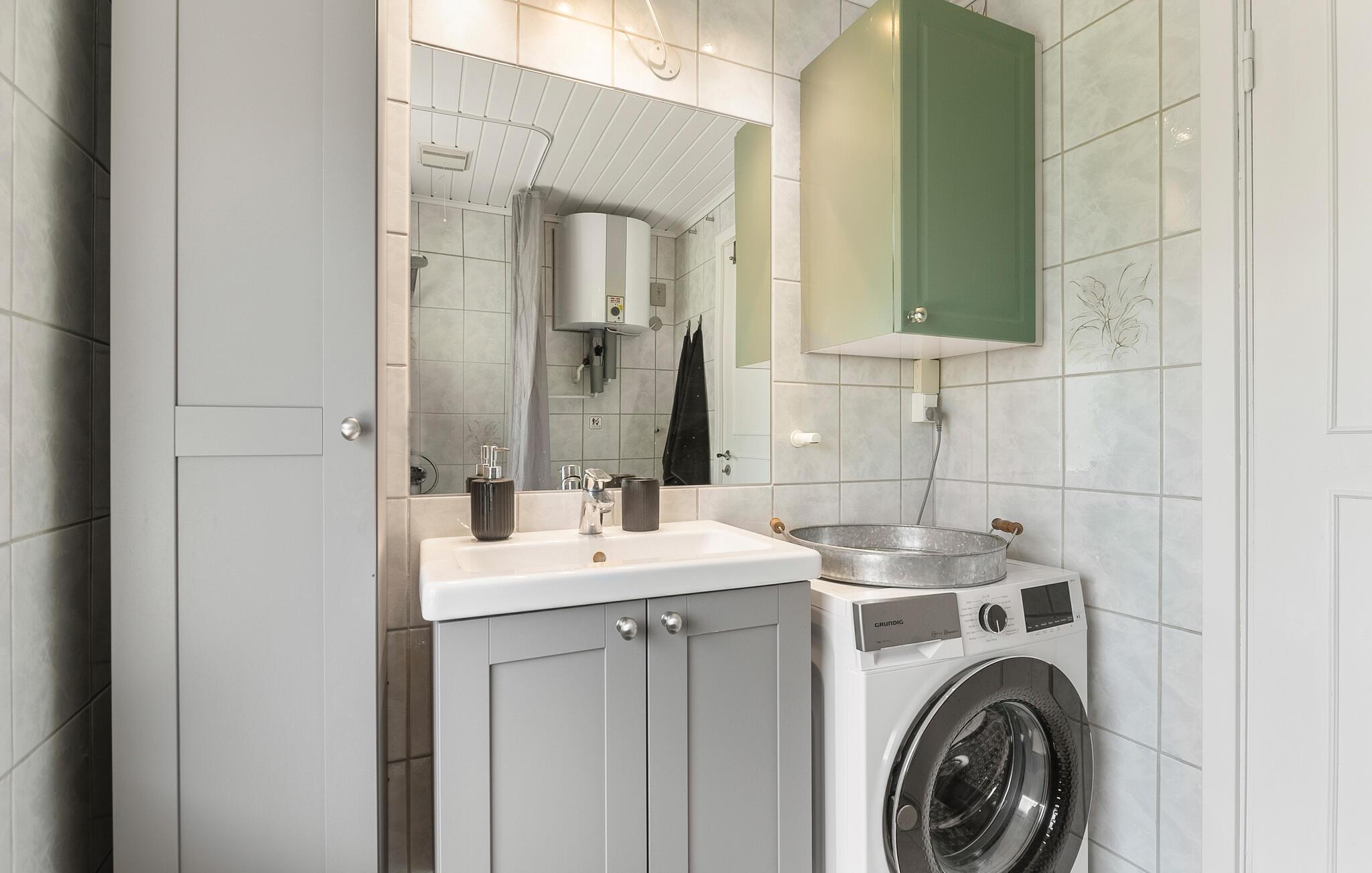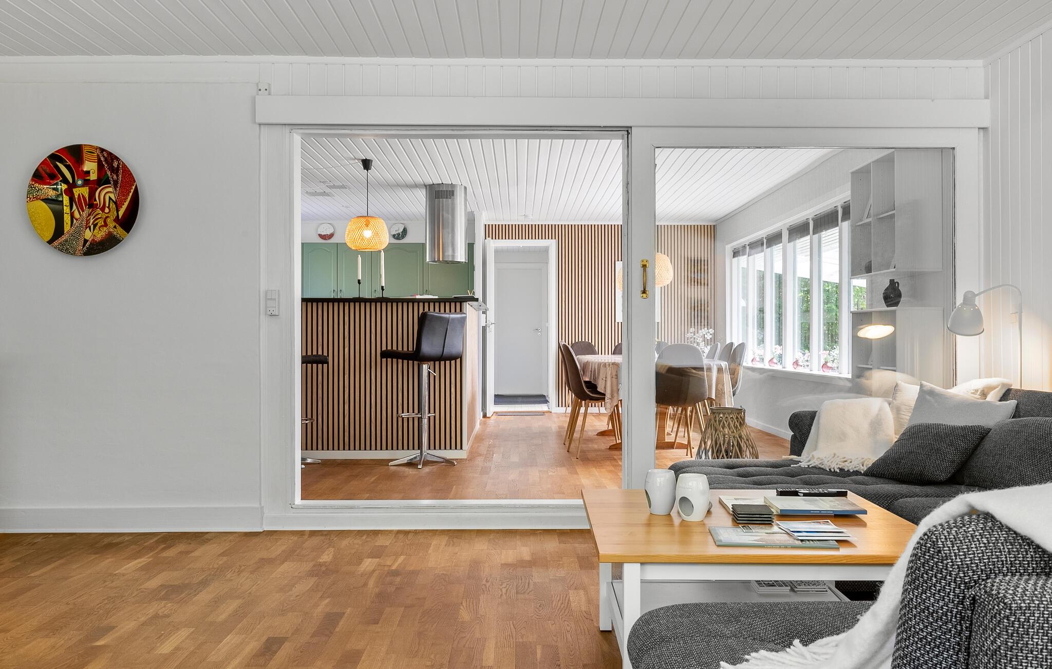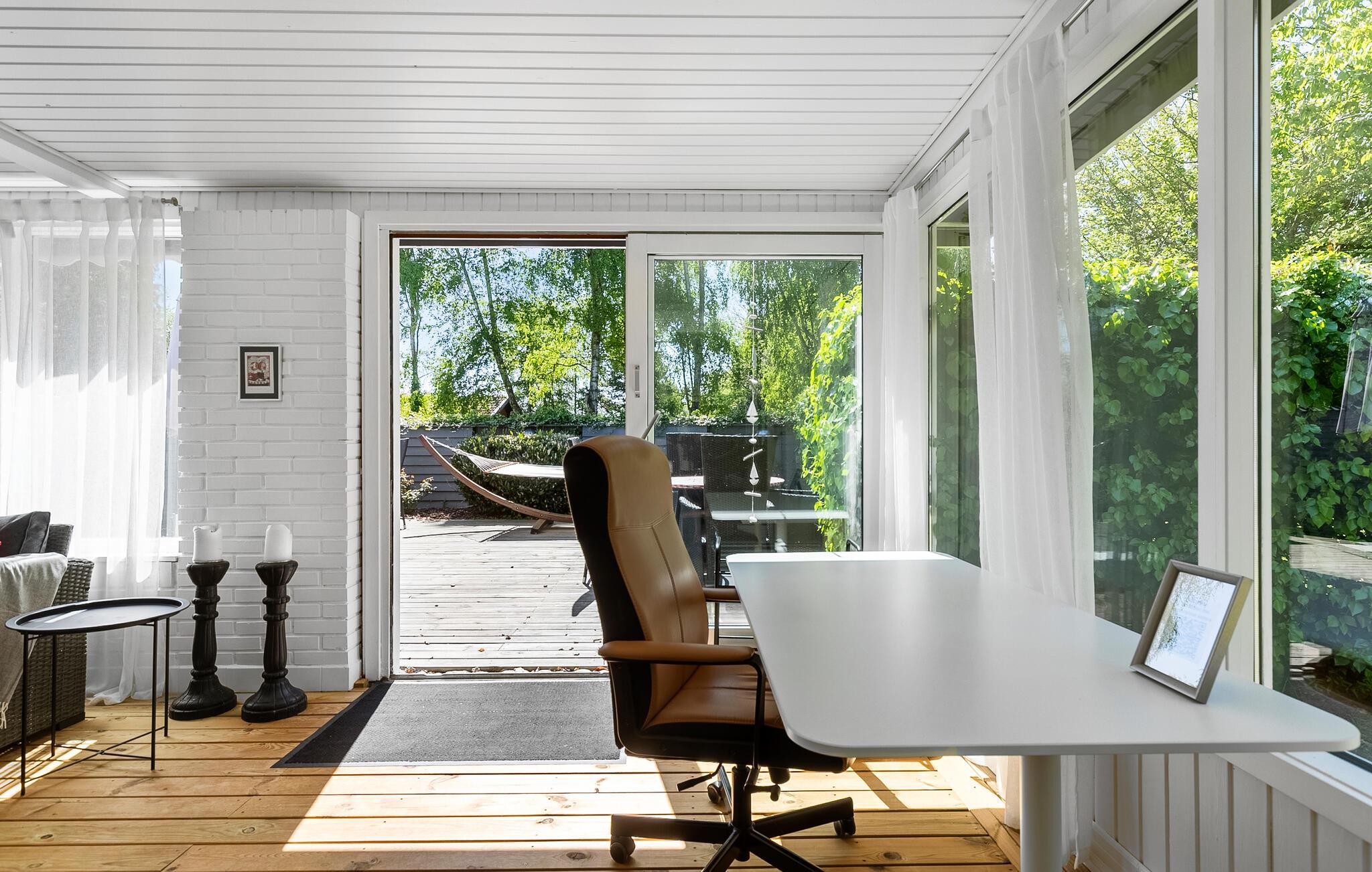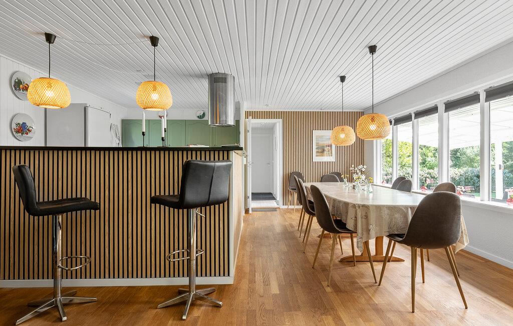 Machen Sie es sich im lichtdurchfluteten Innenbereich dieses geschmackvoll eingerichteten Ferienhauses bequem. Fühlen Sie sich beim Kochen in der voll ausgestatteten Küche wie zu Hause und servieren Sie Ihre Mahlzeiten am einladenden Essbereich mit Blick ins Grüne. Veranstalten Sie gesellige Spieleabende oder lassen Sie den Tag bei einem spannenden Film ausklingen.